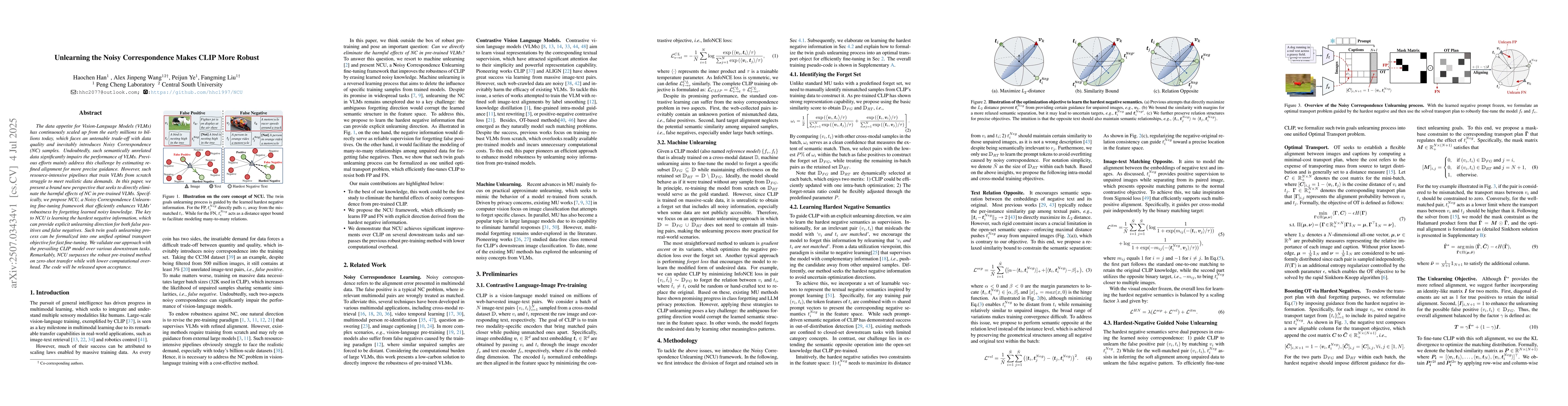 The data appetite for Vision-Language Models (VLMs) has continuously scaled up from the early millions to billions today, which faces an untenable trade-off with data quality and inevitably introduces Noisy Correspondence (NC) samples. Undoubtedly, such semantically unrelated data significantly impairs the performance of VLMs. Previous efforts mainly address this challenge by estimating refined alignment for more precise guidance. However, such resource-intensive pipelines that train VLMs from scratch struggle to meet realistic data demands. In this paper, we present a brand new perspective that seeks to directly eliminate the harmful effects of NC in pre-trained VLMs. Specifically, we propose NCU, a Noisy Correspondence Unlearning fine-tuning framework that efficiently enhances VLMs' robustness by forgetting learned noisy knowledge. The key to NCU is learning the hardest negative information, which can provide explicit unlearning direction for both false positives and false negatives. Such twin goals unlearning process can be formalized into one unified optimal transport objective for fast fine-tuning. We validate our approach with the prevailing CLIP model over various downstream tasks. Remarkably, NCU surpasses the robust pre-trained method on zero-shot transfer while with lower computational overhead. The code will be released upon acceptance.