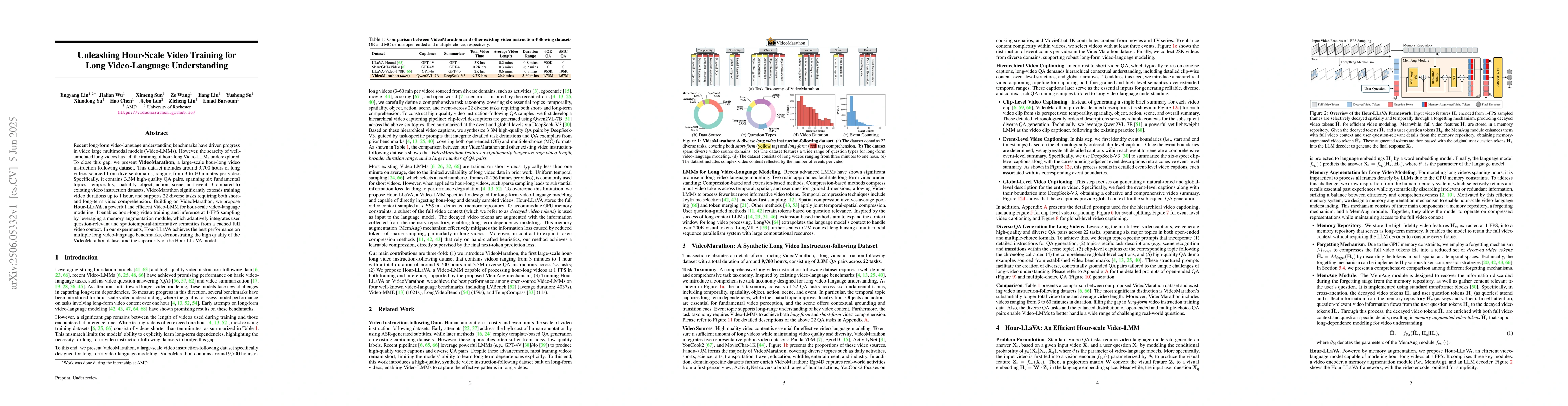 Researchers created a large dataset of hour-long videos with question-answer pairs to improve long-form video understanding models. Their proposed model, Hour-LLaVA, achieves state-of-the-art performance on multiple benchmarks.