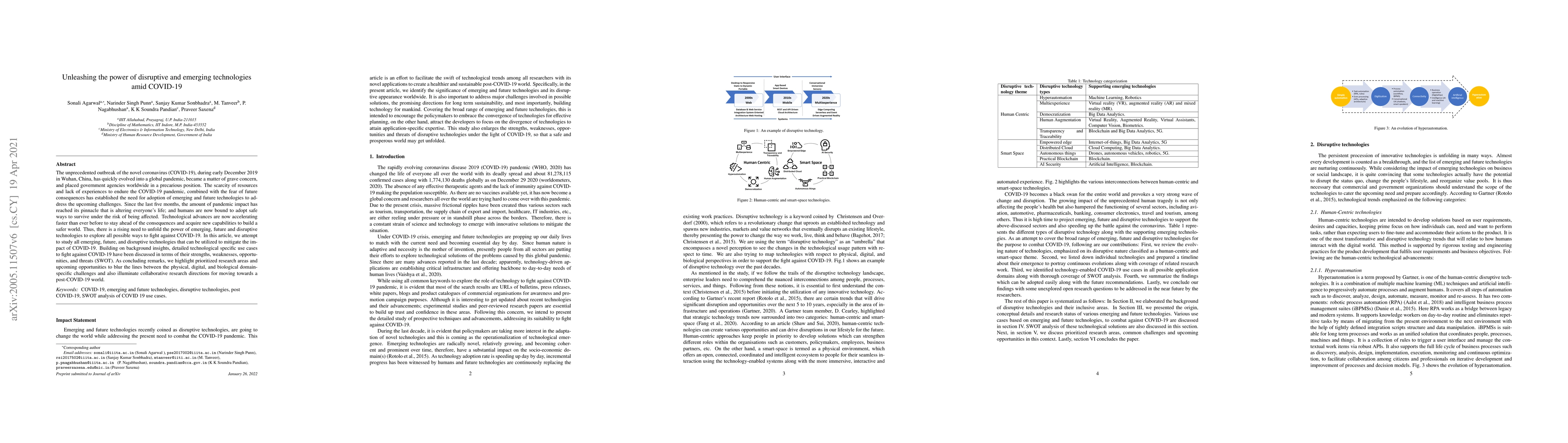 This paper reviews emerging and disruptive technologies to mitigate COVID-19's impact, analyzing their strengths, weaknesses, opportunities, and threats (SWOT). It emphasizes collaborative research to address physical, digital, and biological challenges in a post-COVID-19 world.