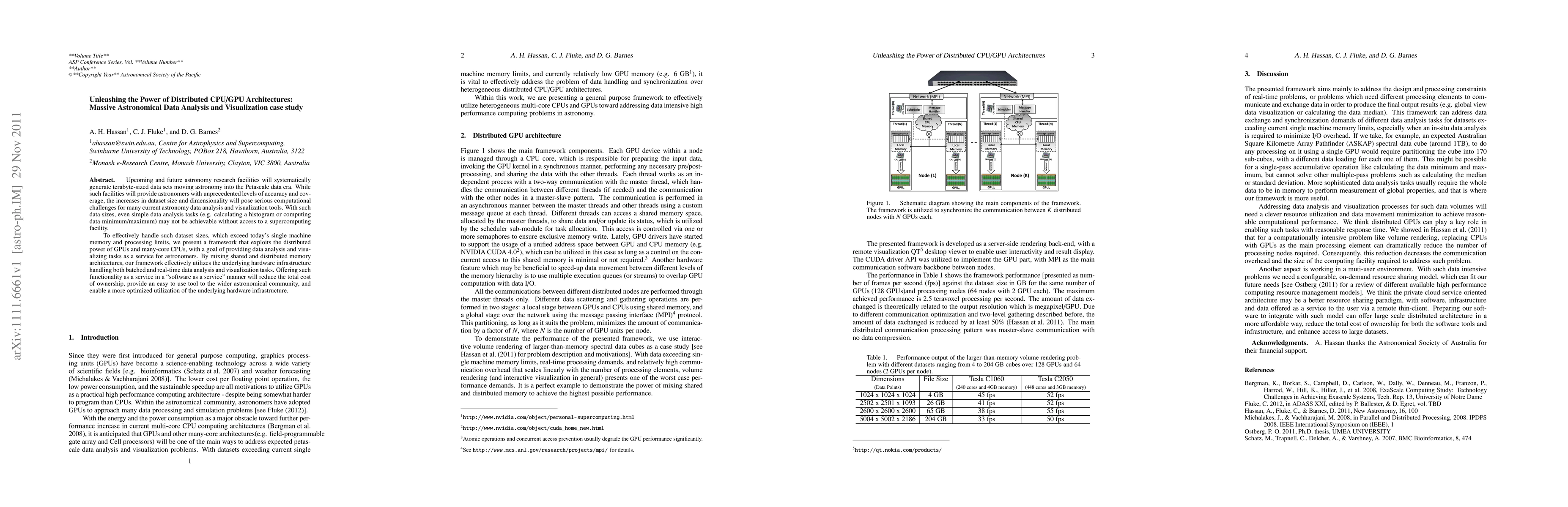 This paper presents a distributed CPU/GPU architecture framework to manage and analyze terabyte-sized astronomical data sets, addressing the computational challenges posed by upcoming Petascale data facilities. The proposed framework leverages both shared and distributed memory to provide efficient data analysis and visualization services, optimizing hardware use and reducing costs for the astronomical community.