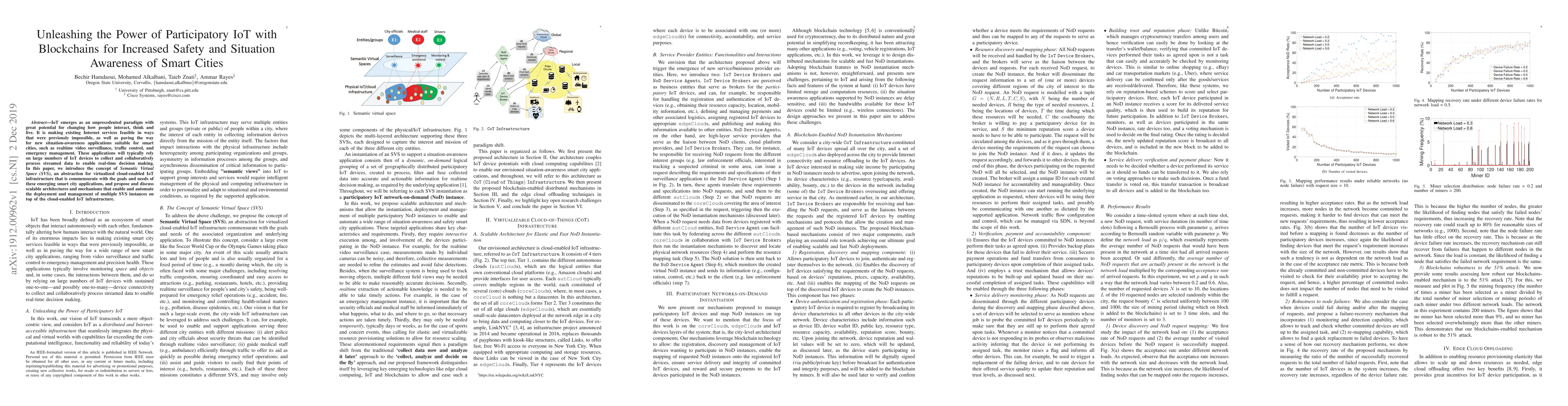 This paper introduces a new framework for smart city applications, leveraging IoT and blockchain technologies to enhance safety and situation awareness. It proposes scalable architectures for deploying virtualized cloud-enabled IoT infrastructure.