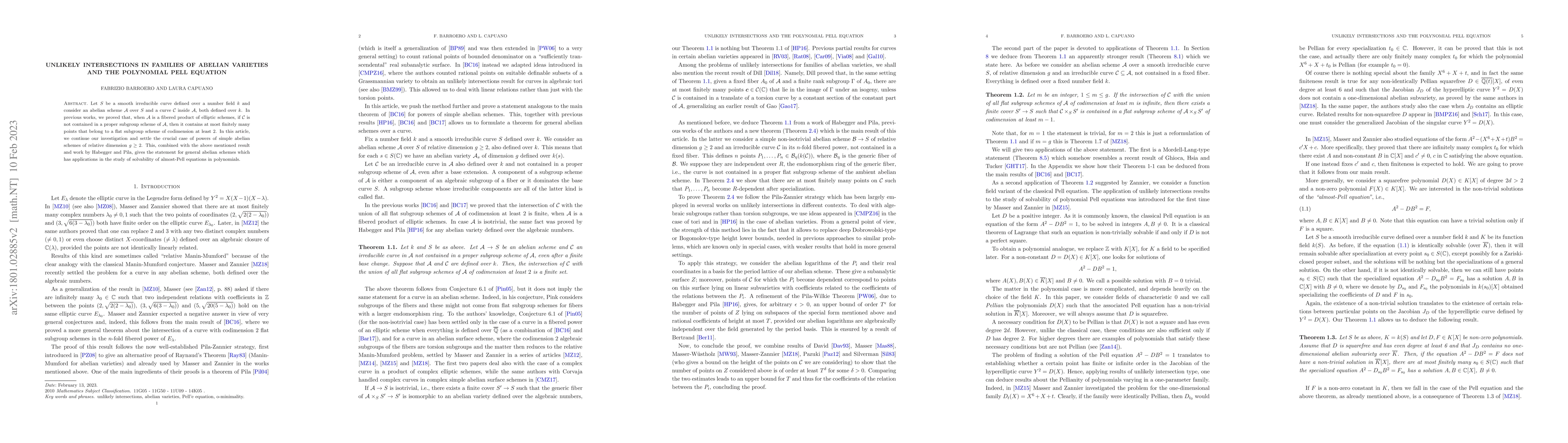 This paper investigates the intersection of abelian varieties with curves and establishes results for powers of simple abelian schemes, extending previous findings on elliptic schemes. These findings, combined with prior work, provide insights into the solvability of polynomial Pell equations.