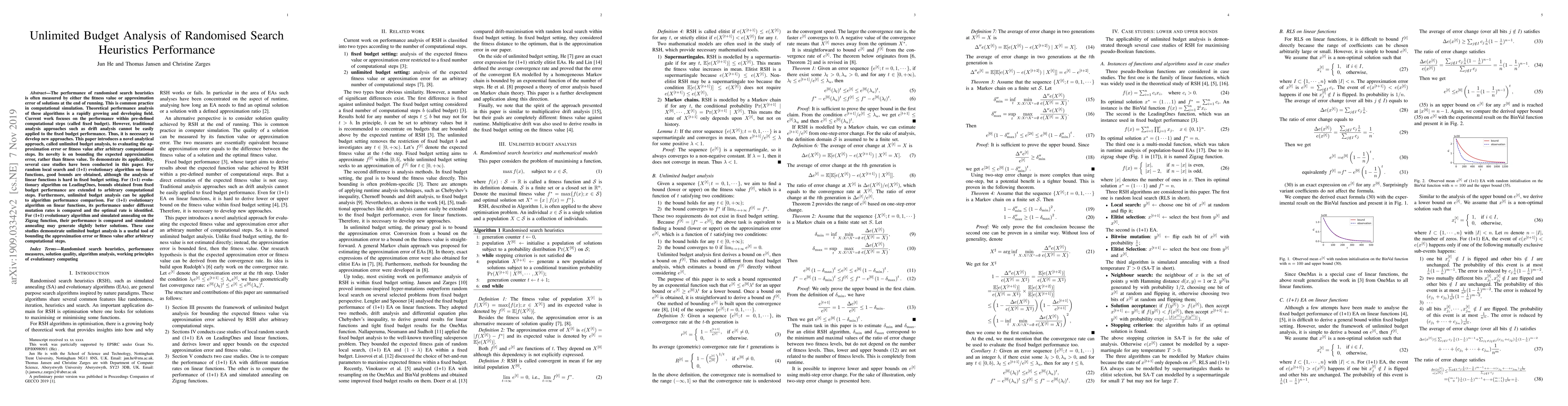 This paper introduces an analytical framework for unlimited budget analysis of randomised search heuristics, providing a method to estimate solution quality without considering computational time.