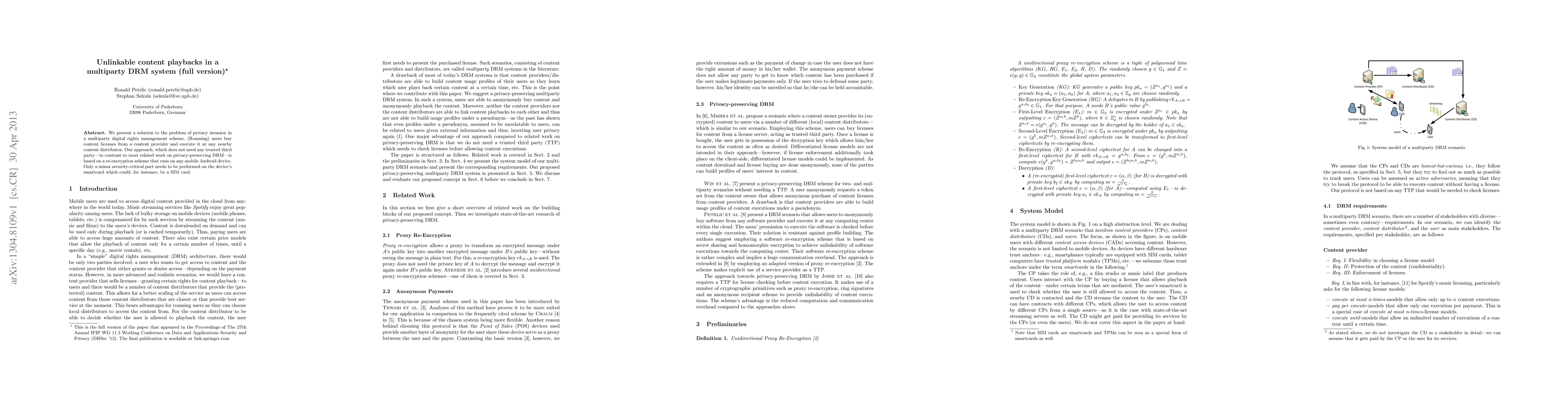 Researchers develop a secure digital rights management system that protects content playbacks on mobile devices without needing a trusted third party. Their approach uses re-encryption to ensure privacy while minimizing security-critical operations.