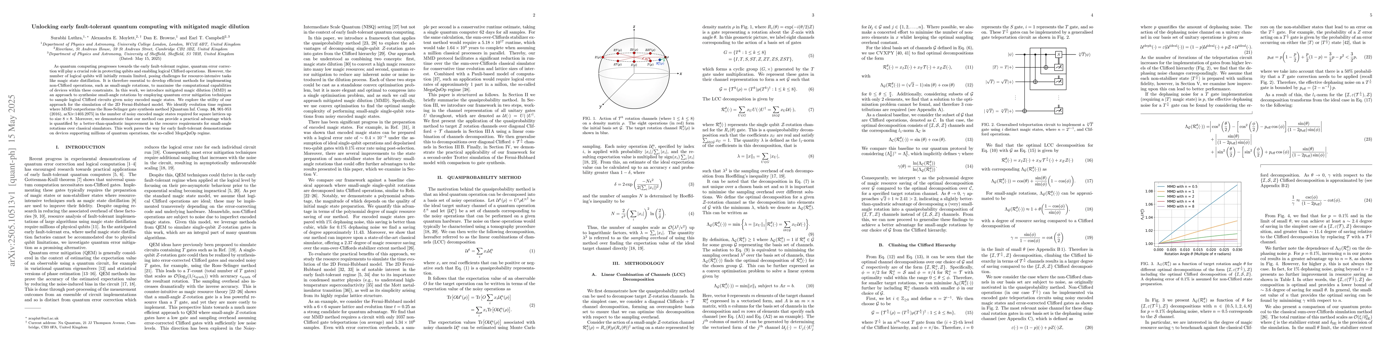 The research introduces mitigated magic dilution (MMD), a method for synthesizing small-angle rotations using quantum error mitigation techniques on noisy encoded magic states to efficiently implement non-Clifford operations within resource constraints.