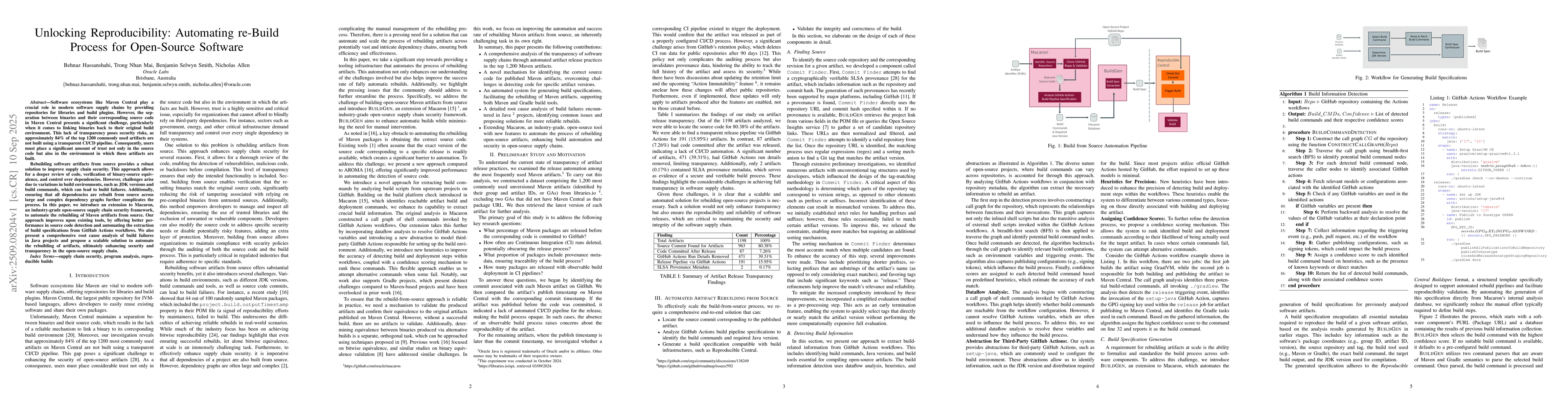 Software ecosystems like Maven Central play a crucial role in modern software supply chains by providing repositories for libraries and build plugins. However, the separation between binaries and their corresponding source code in Maven Central presents a significant challenge, particularly when it comes to linking binaries back to their original build environment. This lack of transparency poses security risks, as approximately 84% of the top 1200 commonly used artifacts are not built using a transparent CI/CD pipeline. Consequently, users must place a significant amount of trust not only in the source code but also in the environment in which these artifacts are built. Rebuilding software artifacts from source provides a robust solution to improve supply chain security. This approach allows for a deeper review of code, verification of binary-source equivalence, and control over dependencies. However, challenges arise due to variations in build environments, such as JDK versions and build commands, which can lead to build failures. Additionally, ensuring that all dependencies are rebuilt from source across large and complex dependency graphs further complicates the process. In this paper, we introduce an extension to Macaron, an industry-grade open-source supply chain security framework, to automate the rebuilding of Maven artifacts from source. Our approach improves upon existing tools, by offering better performance in source code detection and automating the extraction of build specifications from GitHub Actions workflows. We also present a comprehensive root cause analysis of build failures in Java projects and propose a scalable solution to automate the rebuilding of artifacts, ultimately enhancing security and transparency in the open-source supply chain.