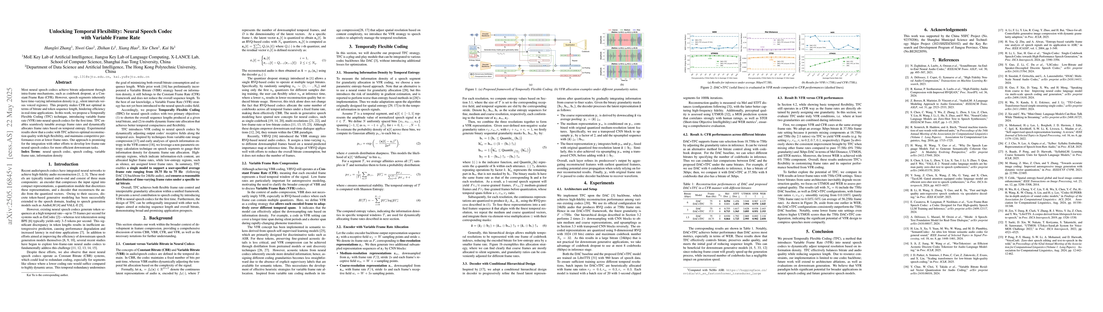 The research proposes Temporally Flexible Coding (TFC), integrating variable frame rate (VFR) into neural speech codecs to adapt to time-varying information density in speech segments.
