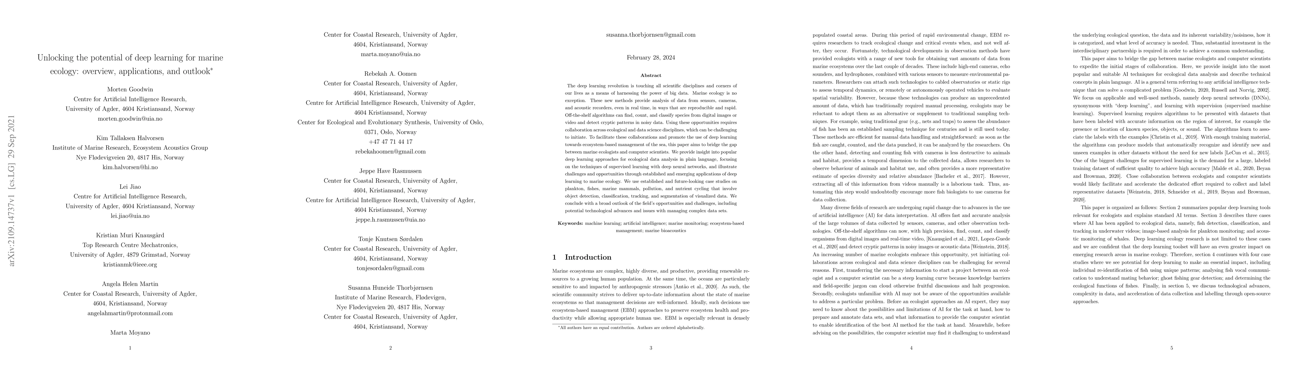This paper explores the integration of deep learning in marine ecology, highlighting its applications in analyzing data from various sensors and its potential to revolutionize ecosystem-based management. It bridges the gap between marine ecologists and computer scientists by explaining deep learning techniques in accessible language and showcasing real-world applications and future opportunities.