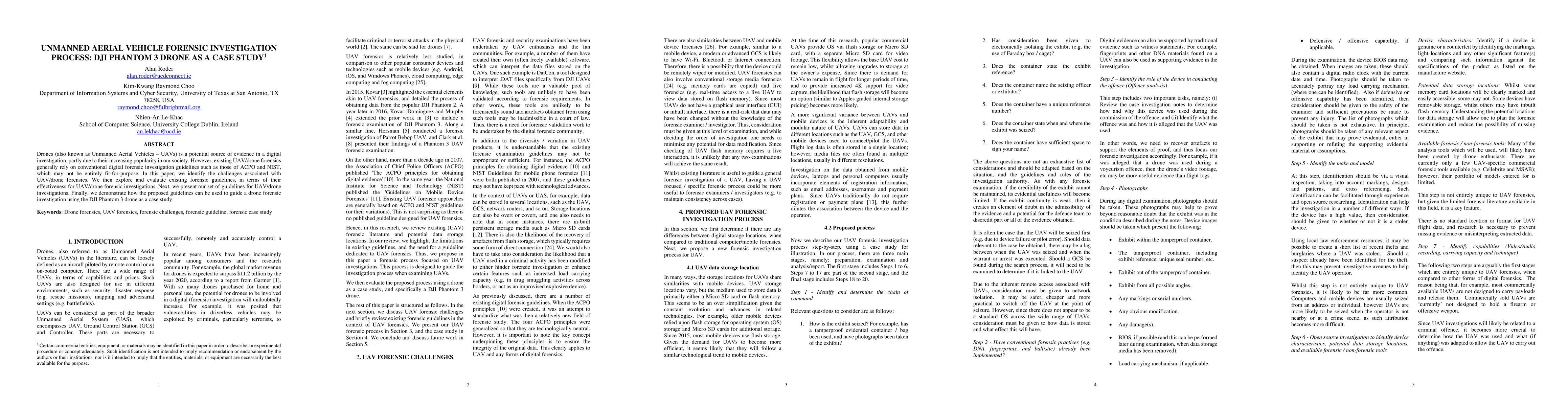 This paper investigates the challenges of forensic investigations involving UAVs, specifically the DJI Phantom 3, and evaluates existing forensic guidelines for their suitability. It proposes a set of tailored guidelines for UAV forensics and demonstrates their application through a case study on the DJI Phantom 3.
