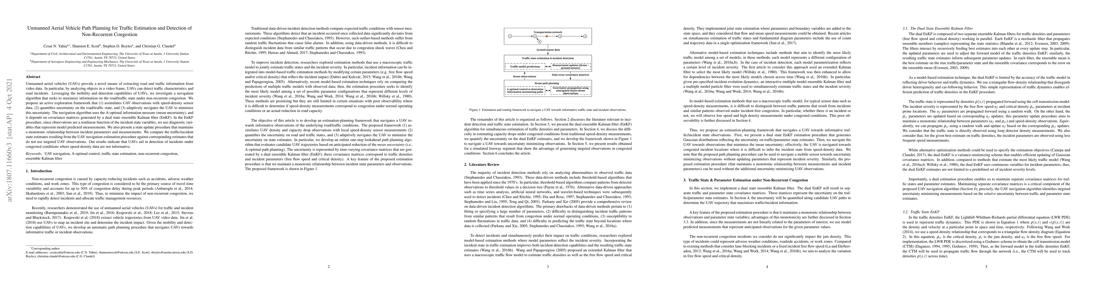 Researchers developed an algorithm for drones to navigate and detect non-recurrent congestion on roads, improving traffic estimation and incident detection under congested conditions.