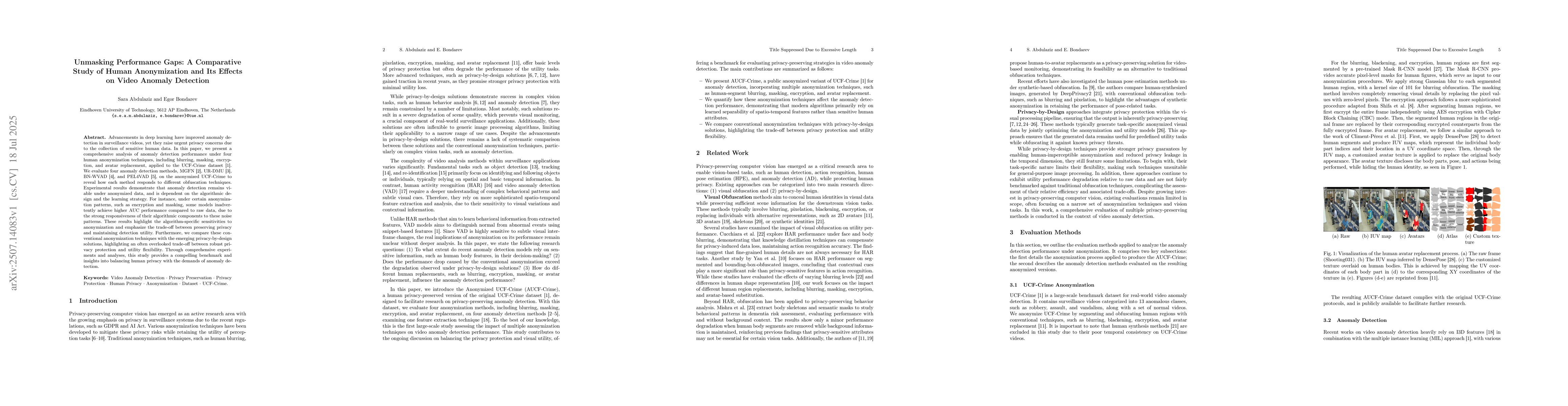 Advancements in deep learning have improved anomaly detection in surveillance videos, yet they raise urgent privacy concerns due to the collection of sensitive human data. In this paper, we present a comprehensive analysis of anomaly detection performance under four human anonymization techniques, including blurring, masking, encryption, and avatar replacement, applied to the UCF-Crime dataset. We evaluate four anomaly detection methods, MGFN, UR-DMU, BN-WVAD, and PEL4VAD, on the anonymized UCF-Crime to reveal how each method responds to different obfuscation techniques. Experimental results demonstrate that anomaly detection remains viable under anonymized data and is dependent on the algorithmic design and the learning strategy. For instance, under certain anonymization patterns, such as encryption and masking, some models inadvertently achieve higher AUC performance compared to raw data, due to the strong responsiveness of their algorithmic components to these noise patterns. These results highlight the algorithm-specific sensitivities to anonymization and emphasize the trade-off between preserving privacy and maintaining detection utility. Furthermore, we compare these conventional anonymization techniques with the emerging privacy-by-design solutions, highlighting an often overlooked trade-off between robust privacy protection and utility flexibility. Through comprehensive experiments and analyses, this study provides a compelling benchmark and insights into balancing human privacy with the demands of anomaly detection.