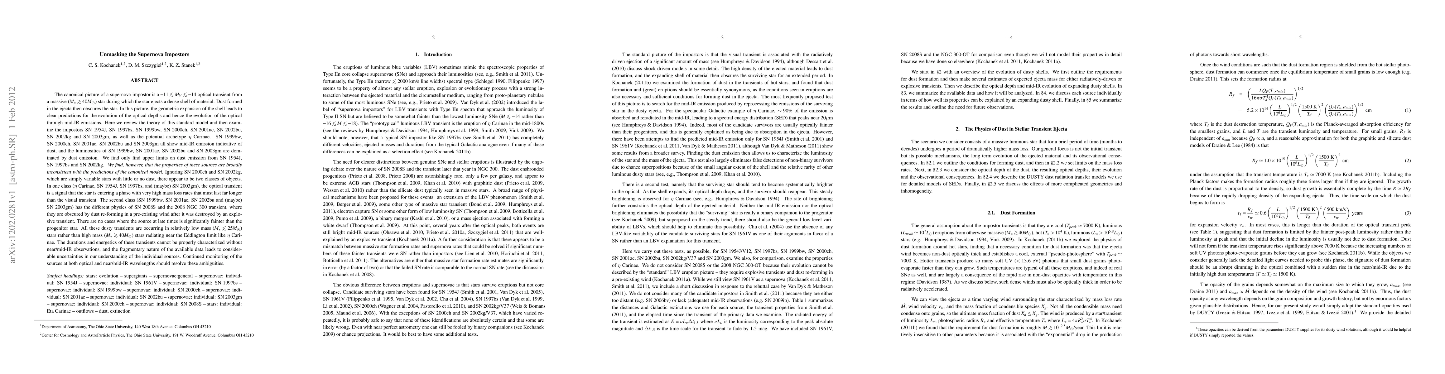 (ABRIDGED) The canonical picture of a supernova impostor is a -11 < M_V < -14 optical transient from a massive (M > 40Msun) star during which the star ejects a dense shell of material. Dust formed in the ejecta then obscures the star. In this picture, the geometric expansion of the shell leads to clear predictions for the evolution of the optical depths and hence the evolution of the optical through mid-IR emissions. Here we review the theory of this standard model and then examine the impostors SN1954J, SN1997bs, SN1999bw, SN2000ch, SN2001ac, SN2002bu, SN2002kg and SN2003gm, as well as the potential archetype eta Carinae. SN1999bw, SN2000ch, SN2001ac, SN2002bu and SN2003gm all show mid-IR emission indicative of dust, and the luminosities of SN1999bw, SN2001ac, SN2002bu and SN2003gm are dominated by dust emission. The properties of these sources are broadly inconsistent with the predictions of the canonical model. There are probably two classes of sources. In one class (eta Carinae, SN1954J, SN1997bs, and (maybe) SN2003gm), the optical transient is a signal that the star is entering a phase with very high mass loss rates that must last far longer than the visual transient. The second class (SN1999bw, SN2001ac, SN2002bu and (maybe) SN2003gm) has the different physics of SN2008S and the 2008 NGC300 transient, where they are obscured by dust re-forming in a pre-existing wind after it was destroyed by an explosive transient. There are no cases where the source at late times is significantly fainter than the progenitor star. All these dusty transients are occurring in relatively low mass (M < 25Msun) stars rather than high mass (M > 40Msun) stars radiating near the Eddington limit like eta Carinae. The durations and energetics of these transients cannot be properly characterized without near/mid-IR observations.