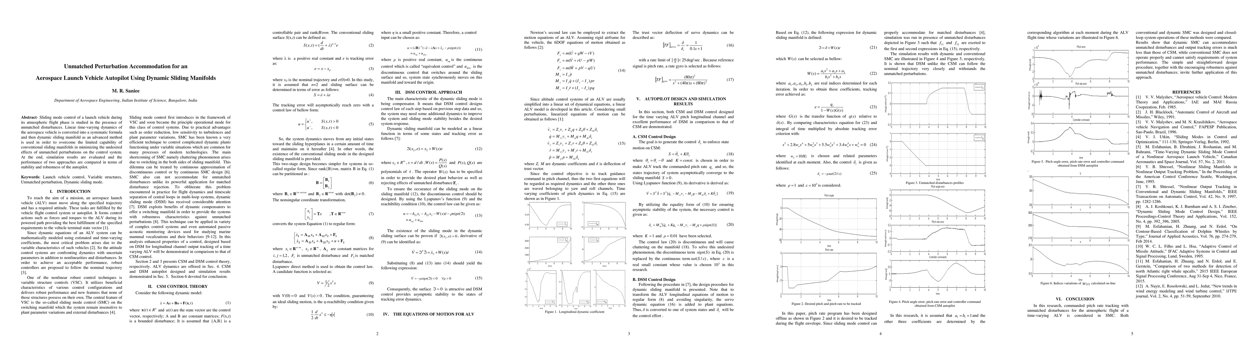 Sliding mode control of a launch vehicle during its atmospheric flight phase is studied in the presence of unmatched disturbances. Linear time-varying dynamics of the aerospace vehicle is converted into a systematic formula and then dynamic sliding manifold as an advanced method is used in order to overcome the limited capability of conventional sliding manifolds in minimizing the undesired effects of unmatched perturbations on the control system. At the end, simulation results are evaluated and the performance of two approaches are compared in terms of stability and robustness of the autopilot.