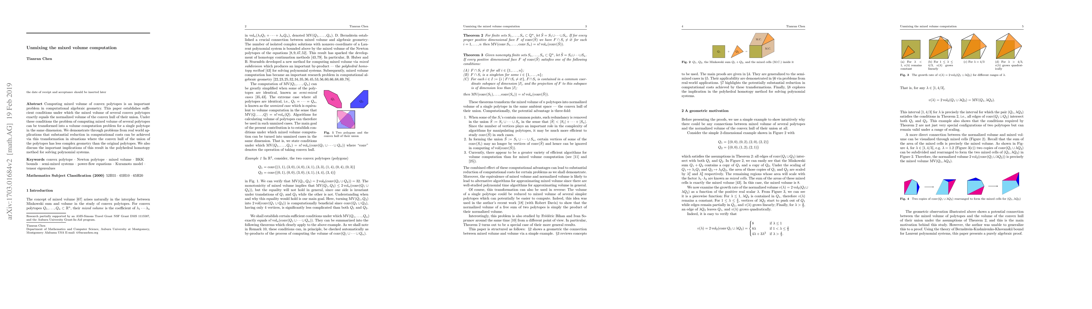 The paper presents a novel approach to transform mixed volume computation into volume computation for a single polytope, under specific conditions, leveraging the theory of BKK bounds.