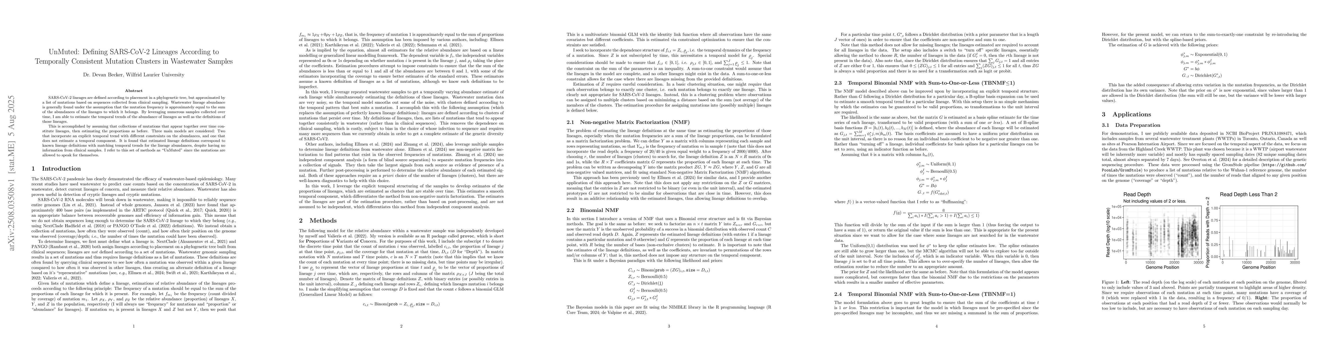SARS-CoV-2 lineages are defined according to placement in a phylogenetic tree, but approximated by a list of mutations based on sequences collected from clinical sampling. Wastewater lineage abundance is generally found under the assumption that the mutation frequency is approximately equal to the sum of the abundances of the lineages to which it belongs. By leveraging numerous samples collected over time, I am able to estimate the temporal trends of the abundance of lineages as well as the definitions of those lineages. This is accomplished by assuming that collections of mutations that appear together over time constitute lineages, then estimating the proportions as before. Three main models are considered: Two that incorporate an explicit temporal trend with different constraints on the abundances, and one that does not estimate a temporal component. It is found that estimated lineage definitions correspond to known lineage definitions with matching temporal trends for the lineage abundances, despite having no information from clinical samples. I refer to this set of methods as "UnMuted" since the mutations are allowed to speak for themselves.