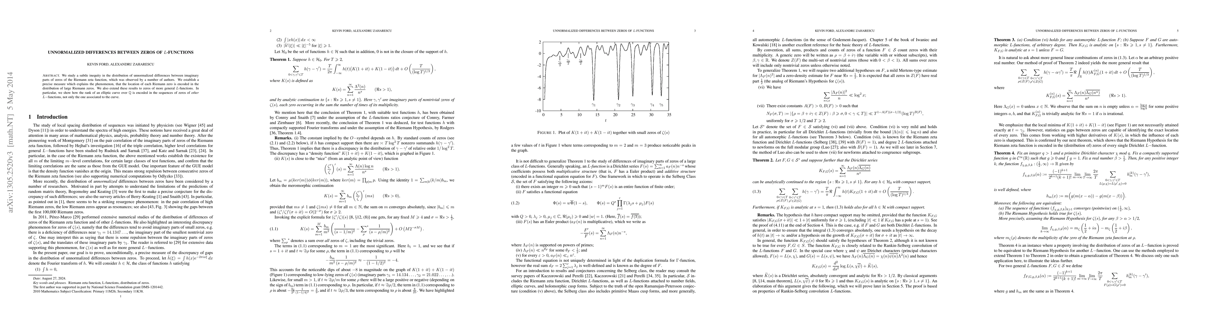 This paper investigates the distribution of unnormalized differences between zeros of the Riemann zeta function, revealing a precise measure that links each zero's location to the distribution of large zeros. The findings are extended to general L-functions, demonstrating how the rank of elliptic curves over Q is encoded in the zeros of associated L-functions.
