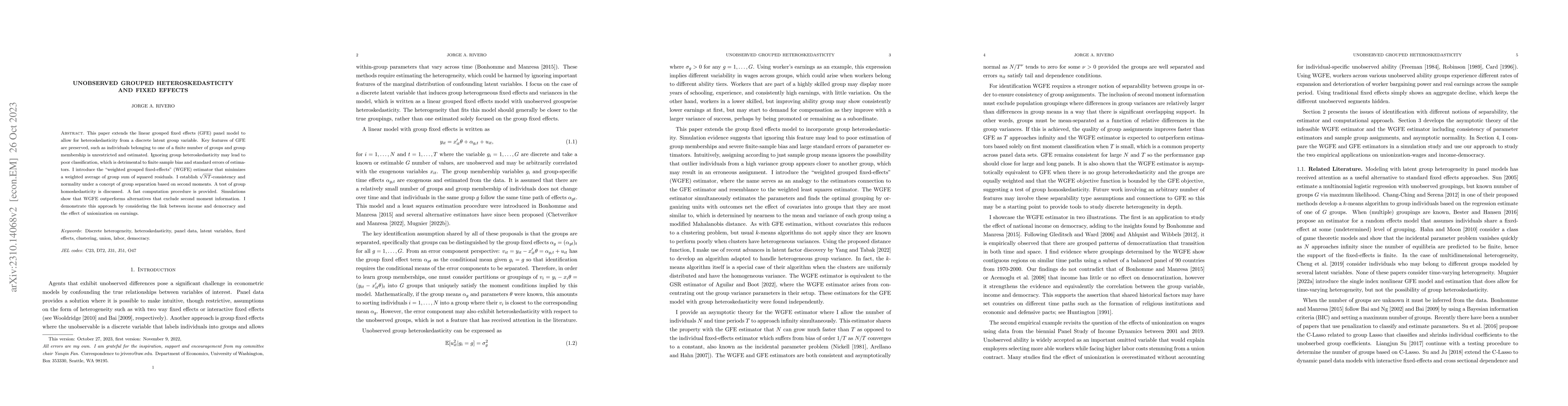 This paper introduces a "weighted grouped fixed effects" (WGFE) estimator for linear panel models that accounts for heteroskedasticity from discrete latent group variables, demonstrating improved performance over traditional methods through simulations and empirical applications on income-democracy and unionization-earnings relationships.