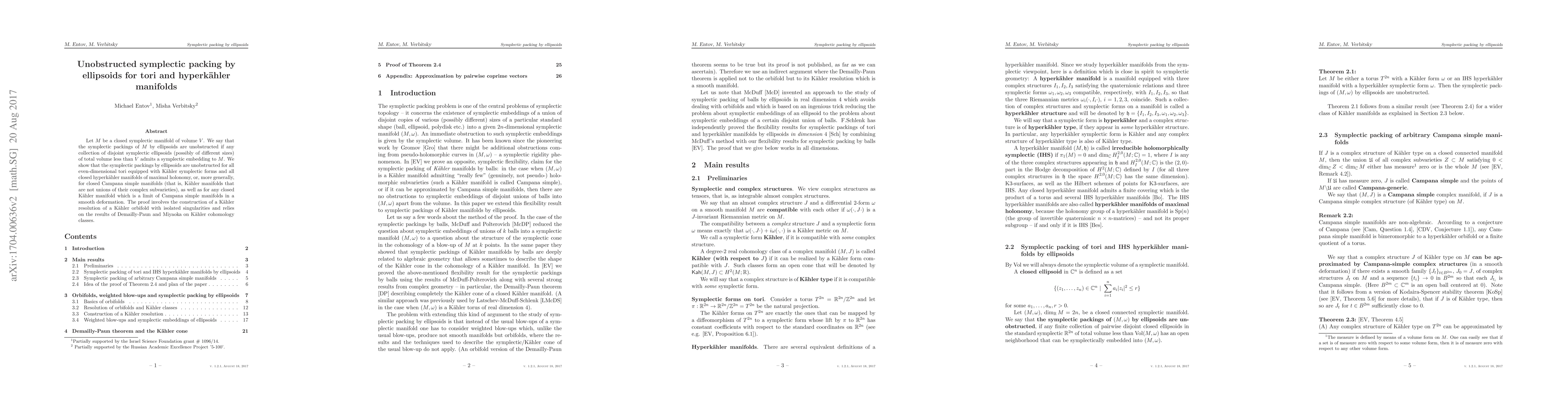 This paper proves that symplectic packings by ellipsoids are unobstructed for even-dimensional tori with Kahler forms and for closed hyperkahler manifolds with maximal holonomy, along with certain Campana simple manifolds and their limits in smooth deformations. The proof constructs a Kahler resolution for a specific Kahler orbifold and uses results from Demailly-Paun and Miyaoka on Kahler cohomology classes.