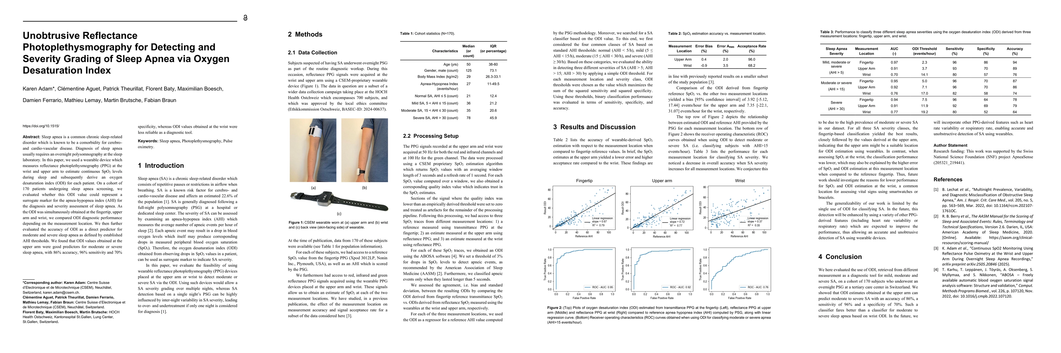 The paper presents a novel approach for sleep apnea severity assessment using ODI derived from reflectance PPG measurements at the wrist and upper arm, offering a potentially more reliable and unobtrusive alternative to traditional overnight polysomnography.