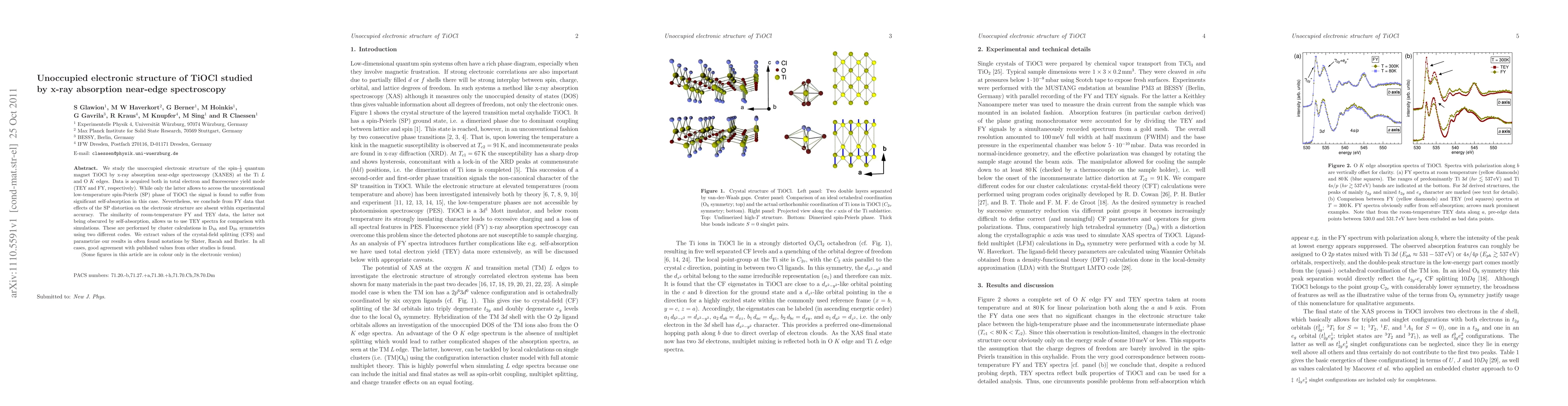This study investigates the unoccupied electronic structure of TiOCl using XANES at Ti L and O K edges, revealing no significant effects of the spin-Peierls phase on the electronic structure. Total electron yield spectra provide clearer data for comparison with simulations, confirming good agreement with previously reported crystal-field splitting values.