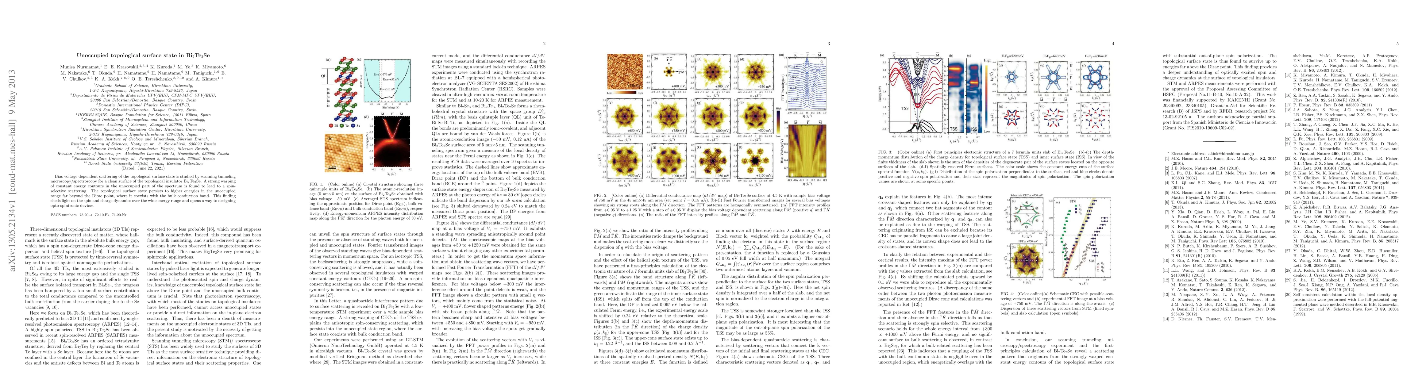 This study reveals strong warping in the unoccupied topological surface state of Bi$_2$Te$_2$Se, leading to spin-selective scattering, and shows that the state persists far beyond the Dirac point, providing insights into spin and charge dynamics and potential for opto-spintronic devices.