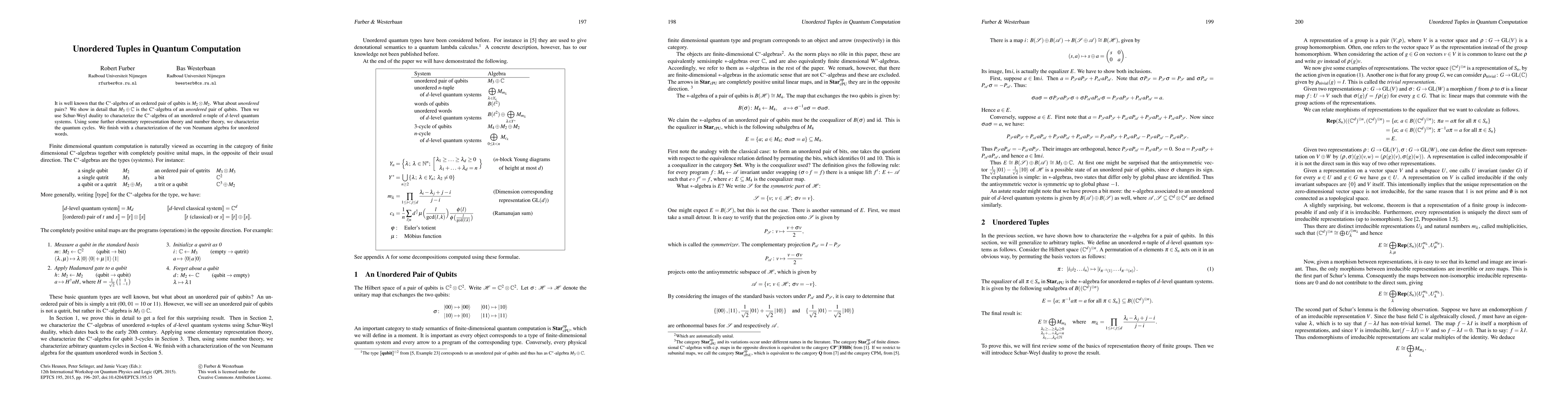 This paper explores the C*-algebra of unordered pairs and n-tuples of qubits using Schur-Weyl duality, elementary representation theory, and number theory to characterize the quantum cycles and the von Neumann algebra for unordered quantum systems.