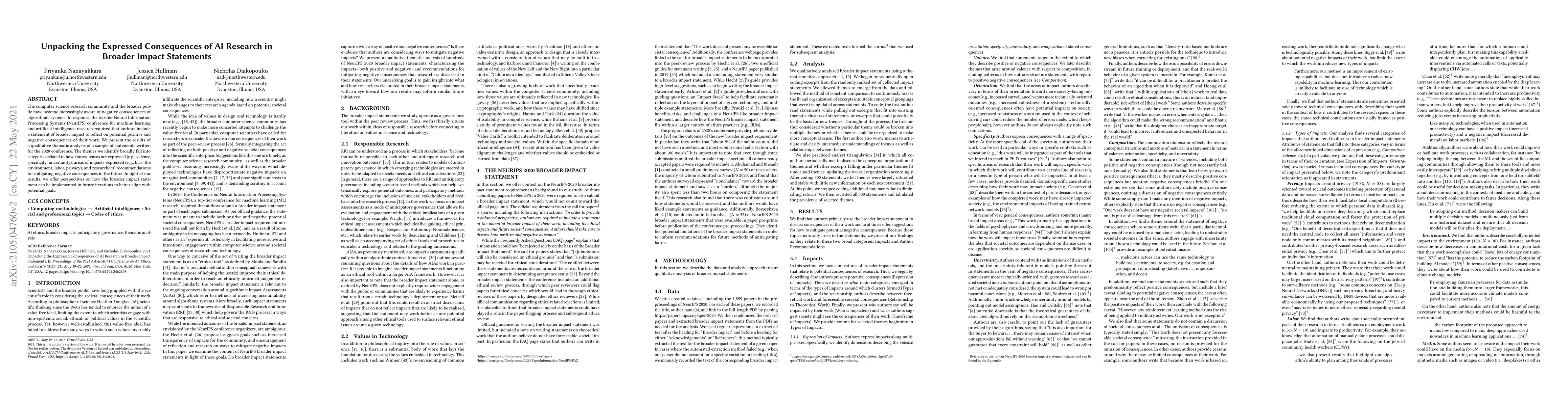 This paper analyzes the broader impact statements from AI researchers at the 2020 NeurIPS conference, identifying themes related to the expression of consequences, areas of impact, and mitigation strategies. The study suggests improvements for future implementation of these statements to better align with research goals.