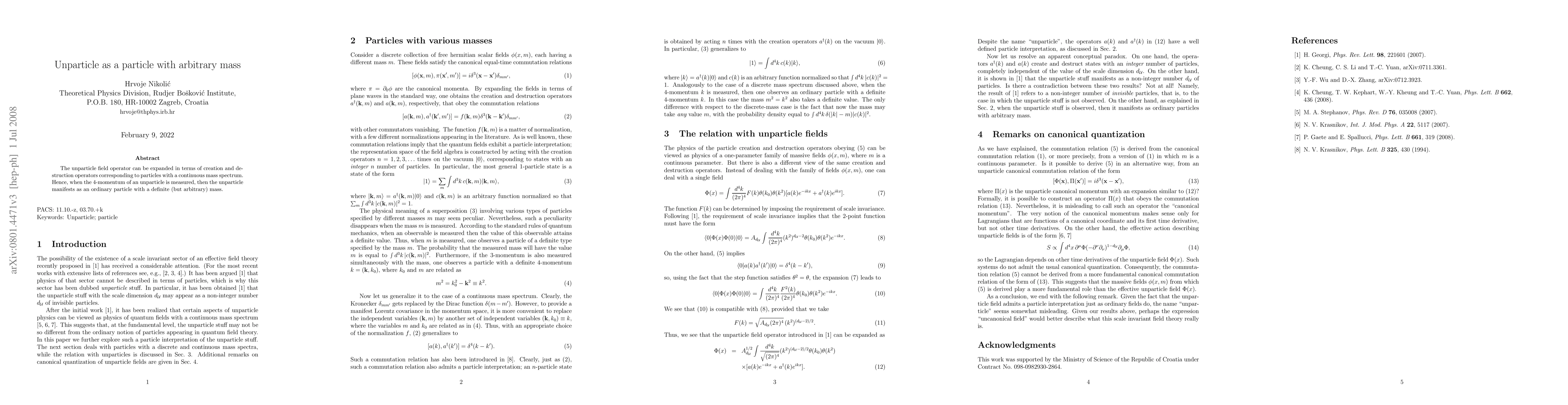 The unparticle field operator can be expanded in terms of creation and destruction operators corresponding to particles with a continuous mass spectrum. Hence, when the 4-momentum of an unparticle is measured, then the unparticle manifests as an ordinary particle with a definite (but arbitrary) mass.