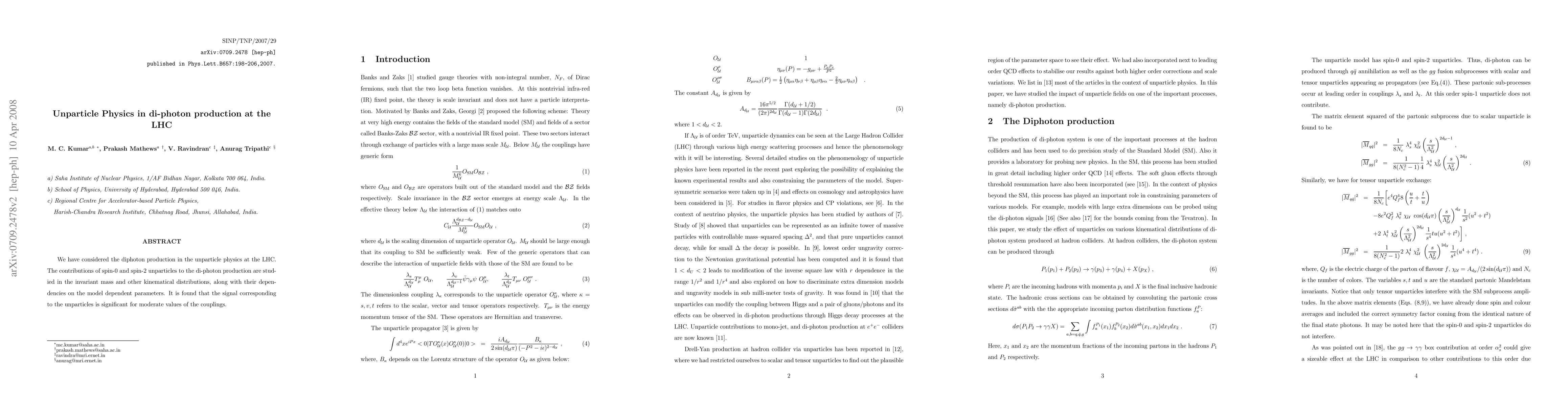 Researchers studied unparticle physics in diphoton production at the CERN LHC, finding significant signals for moderate coupling constant values.