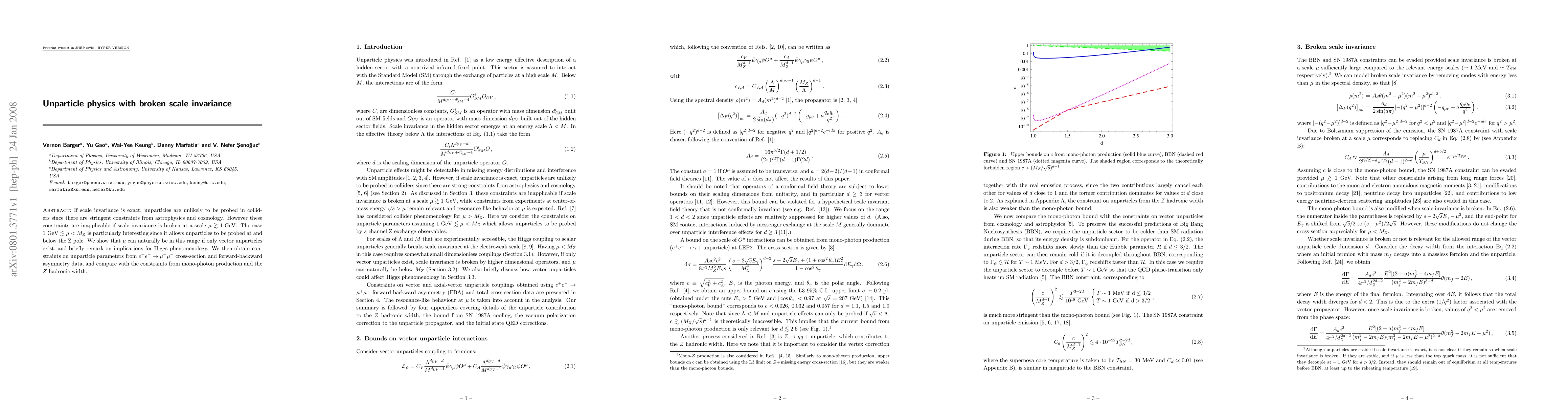 This paper explores the possibility of probing unparticles in colliders if scale invariance is broken at a scale between 1 GeV and the Z boson mass. It demonstrates that vector unparticles can naturally exist in this range and derives constraints on unparticle parameters from various experimental data, including e+ e- -> mu+ mu- cross-section and forward-backward asymmetry, comparing these with constraints from mono-photon production and Z hadronic width.