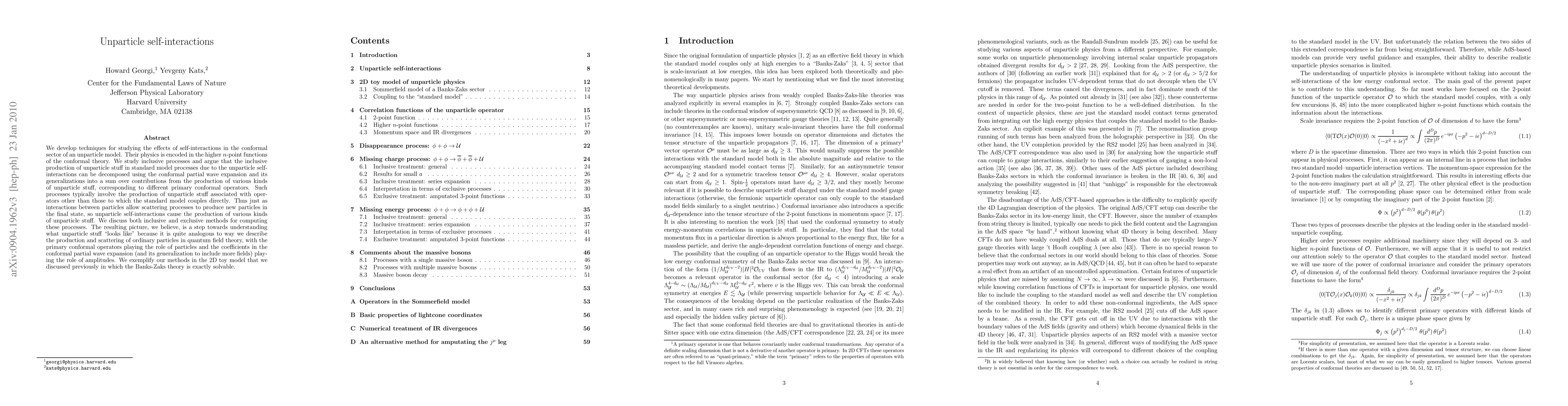 We develop techniques for studying the effects of self-interactions in the conformal sector of an unparticle model. Their physics is encoded in the higher n-point functions of the conformal theory. We study inclusive processes and argue that the inclusive production of unparticle stuff in standard model processes due to the unparticle self-interactions can be decomposed using the conformal partial wave expansion and its generalizations into a sum over contributions from the production of various kinds of unparticle stuff, corresponding to different primary conformal operators. Such processes typically involve the production of unparticle stuff associated with operators other than those to which the standard model couples directly. Thus just as interactions between particles allow scattering processes to produce new particles in the final state, so unparticle self-interactions cause the production of various kinds of unparticle stuff. We discuss both inclusive and exclusive methods for computing these processes. The resulting picture, we believe, is a step towards understanding what unparticle stuff "looks like" because it is quite analogous to way we describe the production and scattering of ordinary particles in quantum field theory, with the primary conformal operators playing the role of particles and the coefficients in the conformal partial wave expansion (and its generalization to include more fields) playing the role of amplitudes. We exemplify our methods in the 2D toy model that we discussed previously in which the Banks-Zaks theory is exactly solvable.