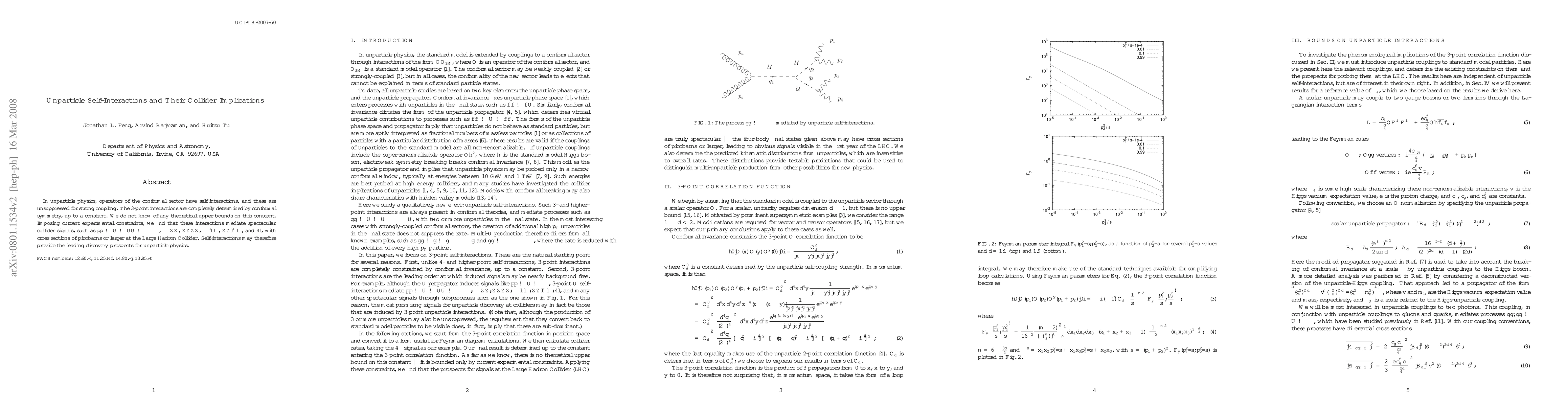 In unparticle physics, operators of the conformal sector have self-interactions, and these are unsuppressed for strong coupling. The 3-point interactions are completely determined by conformal symmetry, up to a constant. We do not know of any theoretical upper bounds on this constant. Imposing current experimental constraints, we find that these interactions mediate spectacular collider signals, such as $pp -> U -> UU -> \gamma \gamma \gamma \gamma$, $\gamma \gamma ZZ$, $ZZZZ$, $\gamma \gamma l^+ l^-$, $ZZ l^+ l^-$, and $4l$, with cross sections of picobarns or larger at the Large Hadron Collider. Self-interactions may therefore provide the leading discovery prospects for unparticle physics.