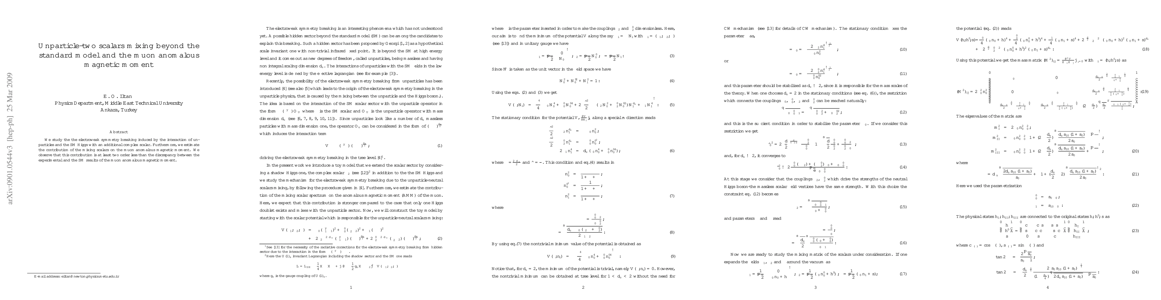 Summary: This paper investigates the impact of unparticle interactions and additional scalar mixing beyond the Standard Model on the electroweak symmetry breaking and the muon's anomalous magnetic moment, finding that the contribution from the mixing scalars is significantly smaller than the experimental discrepancy.