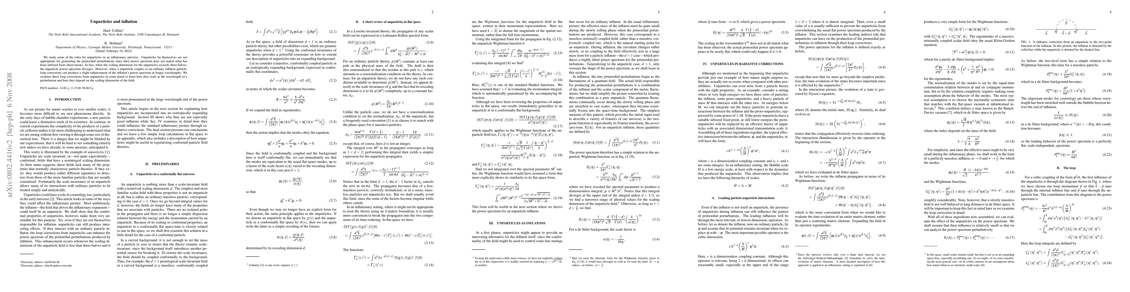 We study some of the roles for unparticles in an inflationary universe. Unparticles by themselves are not appropriate for generating the primordial perturbations since their power spectrum does not match what has been inferred from observations. In fact, when the scaling dimension for the unparticles exceeds three-halves, the unparticle power spectrum diverges. However, when a unparticle couples to an ordinary inflaton particle, loop corrections can produce a slight enhancement of the inflaton's power spectrum at longer wavelengths. We examine these loop corrections from unparticles in some detail to learn how they scale in the wavelength of a perturbation and how they depend on the scaling dimension of the field.