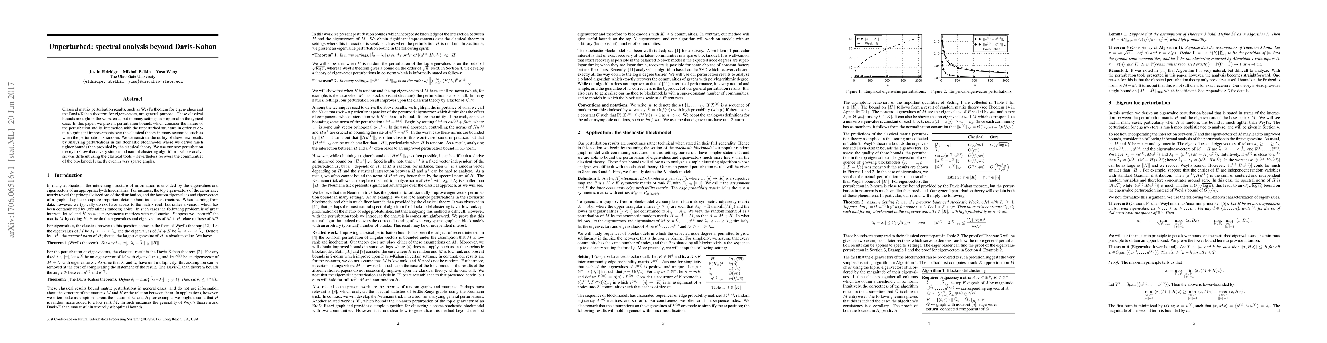 This paper introduces new perturbation bounds that outperform classical results in typical cases, especially when the perturbation is random. It demonstrates these improvements by analyzing stochastic block models, showing that a simple clustering algorithm can accurately recover community structures even in sparse graphs.