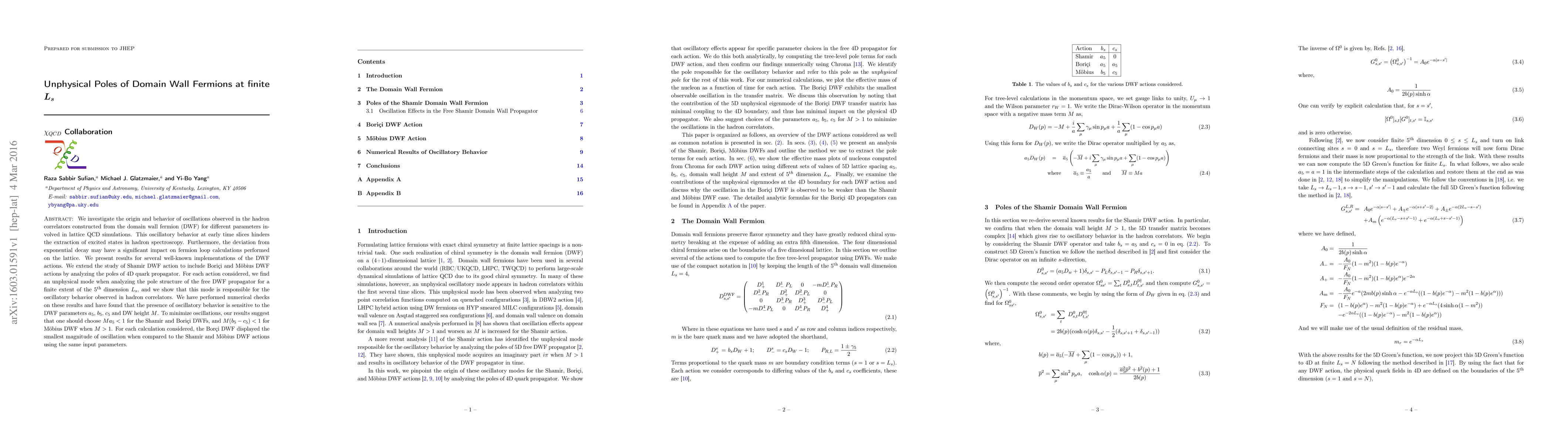 This paper investigates the unphysical poles in domain wall fermions (DWF) at finite $L_s$ in lattice QCD, attributing oscillatory behavior in hadron correlators to these poles. It suggests parameter choices to minimize oscillations, with the Bori\c{c}i DWF showing the least oscillation.