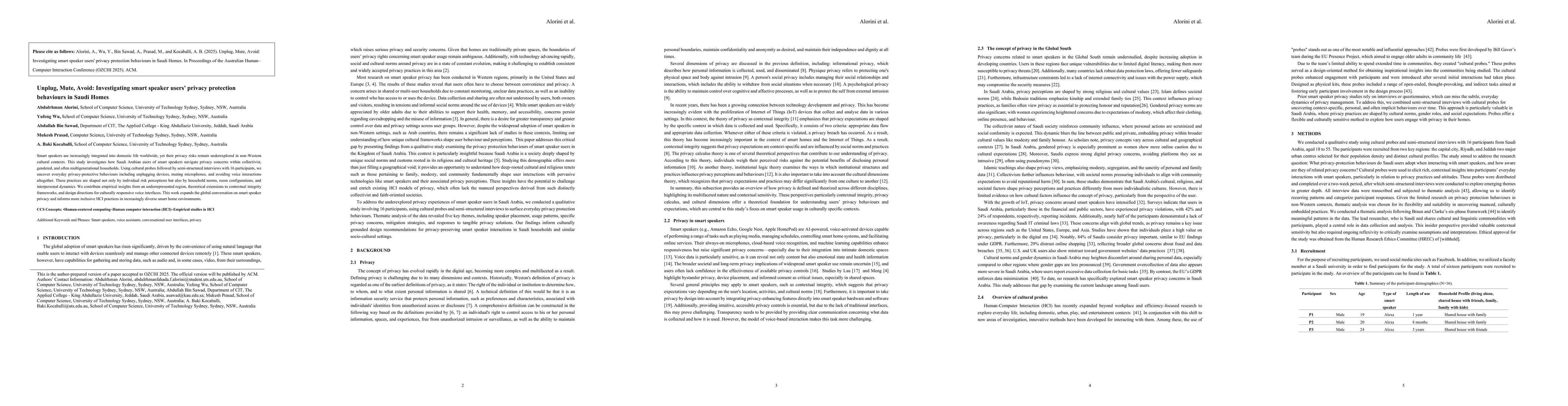 Smart speakers are increasingly integrated into domestic life worldwide, yet their privacy risks remain underexplored in non-Western cultural contexts. This study investigates how Saudi Arabian users of smart speakers navigate privacy concerns within collectivist, gendered, and often multigenerational households. Using cultural probes followed by semi-structured interviews with 16 participants, we uncover everyday privacy-protective behaviours including unplugging devices, muting microphones, and avoiding voice interactions altogether. These practices are shaped not only by individual risk perceptions but also by household norms, room configurations, and interpersonal dynamics. We contribute empirical insights from an underrepresented region, theoretical extensions to contextual integrity frameworks, and design directions for culturally responsive voice interfaces. This work expands the global conversation on smart speaker privacy and informs more inclusive HCI practices in increasingly diverse smart home environments.