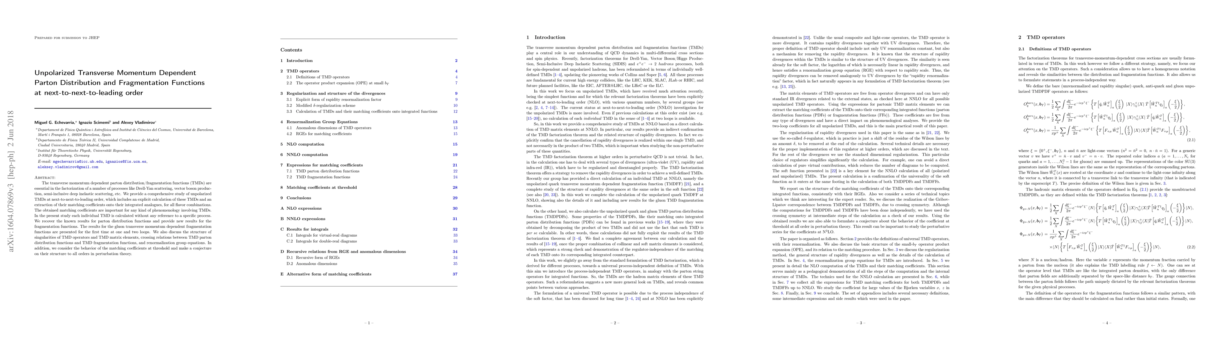 This paper provides a detailed calculation of unpolarized transverse momentum dependent parton distribution and fragmentation functions at next-to-next-to-leading order, including new results for gluon TMD fragmentation functions and matching coefficients. The study also discusses singularities, crossing relations, and renormalization group equations.