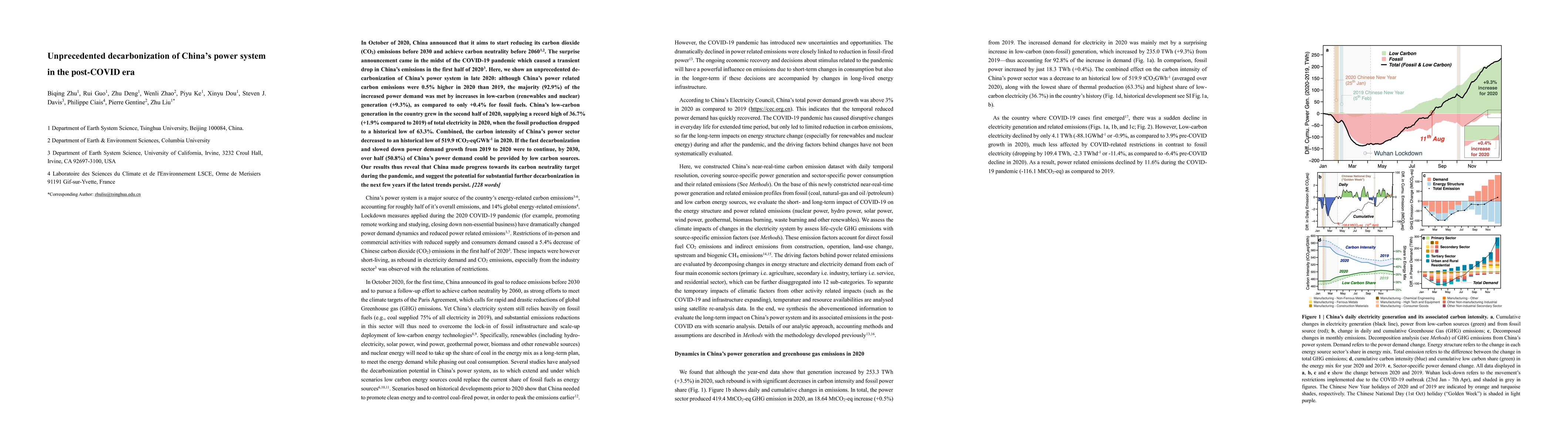 This paper highlights China's significant progress in decarbonizing its power system in 2020, driven by a substantial increase in low-carbon generation despite a slight rise in overall emissions. The study projects that continued trends could enable China to meet over half of its power demand with low-carbon sources by 2030, aligning with its carbon neutrality goals.