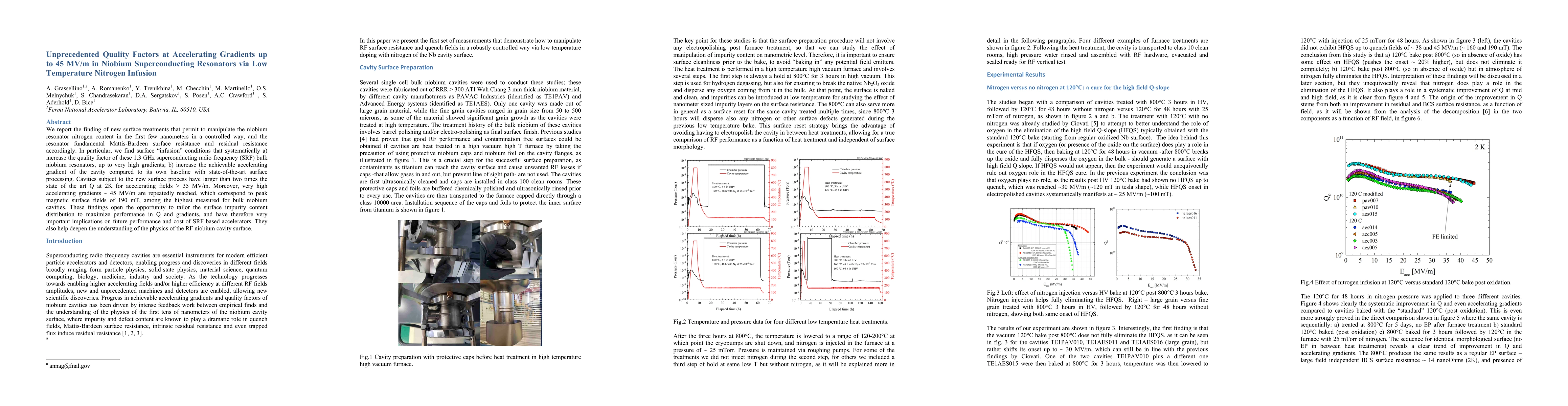 This research demonstrates new surface treatments that enhance the quality factor and accelerating gradient of niobium superconducting resonators by controlling nitrogen infusion, achieving unprecedented gradients up to 45 MV/m and significantly improving performance over state-of-the-art methods. These advancements hold significant implications for future accelerators and deepen the understanding of niobium cavity surface physics.