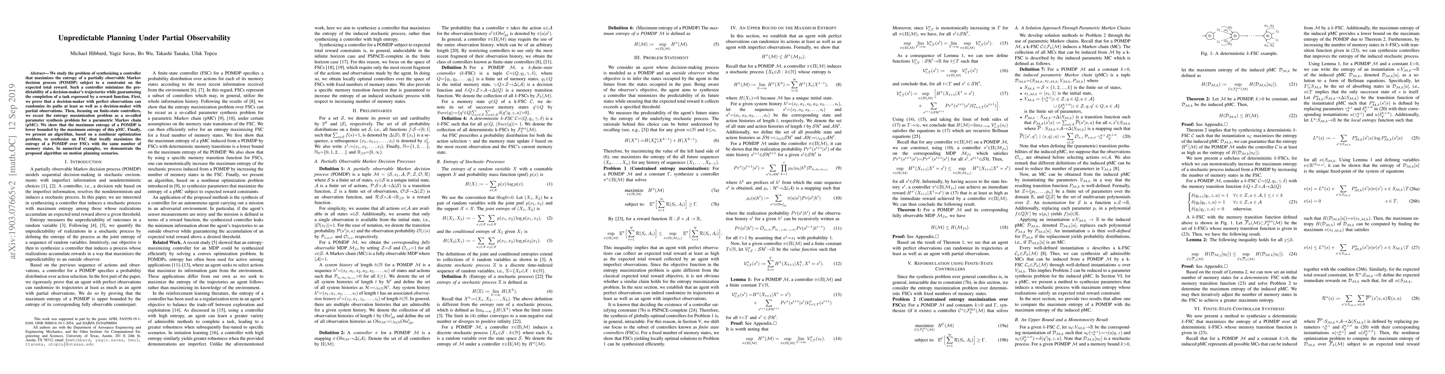 Researchers developed an algorithm to maximize entropy in partially observable Markov decision processes while ensuring task completion, with implications for motion planning scenarios.