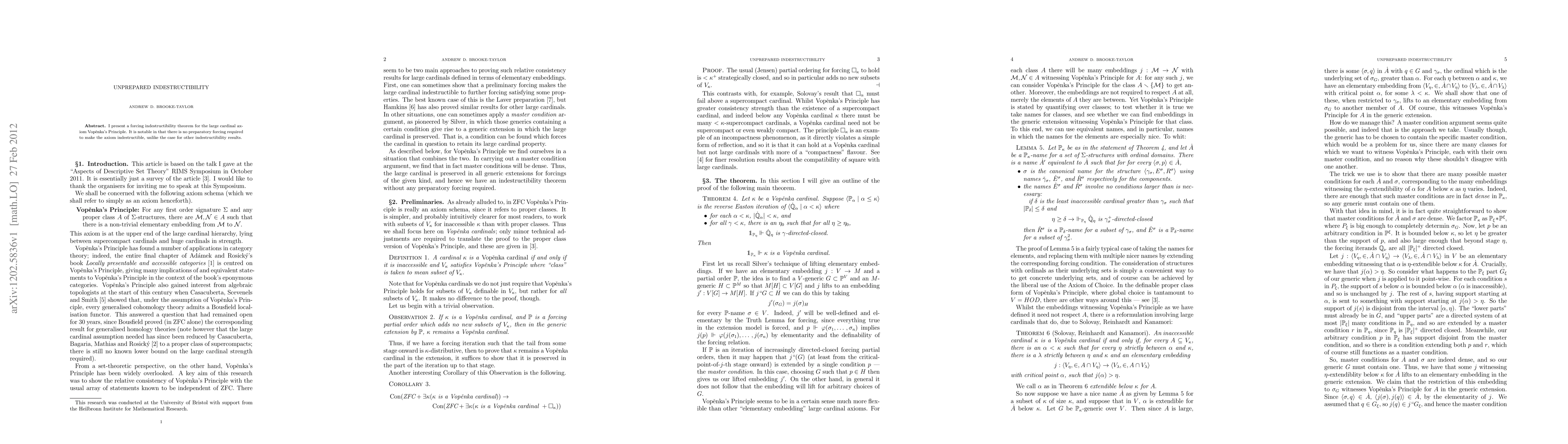 This article is based on the talk of the same name which I gave at the "Aspects of Descriptive Set Theory" RIMS Symposium in Kyoto in October 2011; it is essentially just a survey of my article "Indestructibility of Vopenka's Principle". In particular, I present (with a sketch of the proof) a forcing indestructibility theorem for the large cardinal axiom Vopenka's Principle. It is notable in that there is no preparatory forcing required to make the axiom indestructible, unlike other indestructibility results.