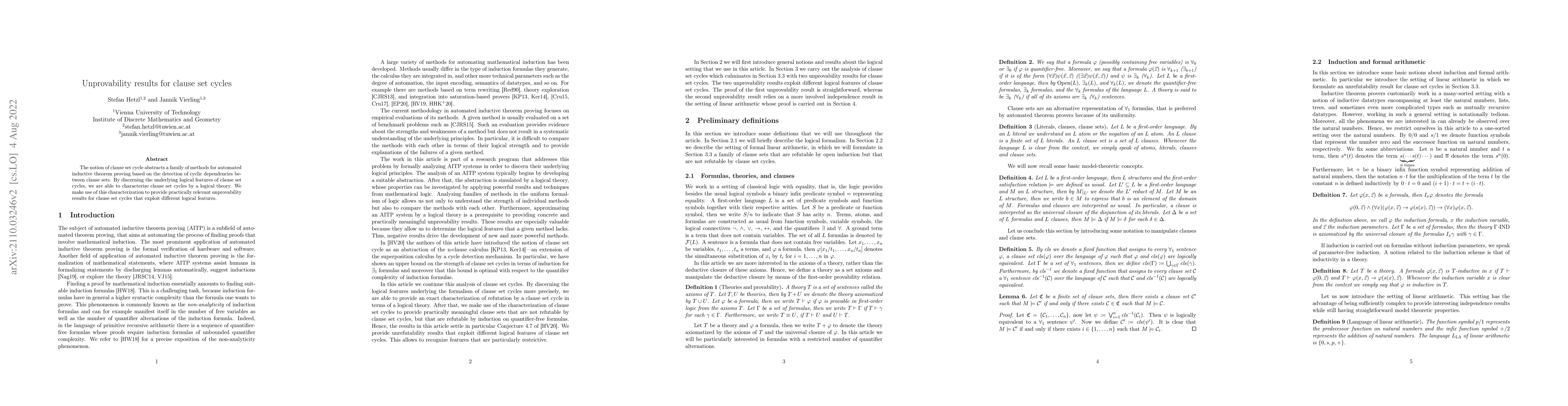 This paper explores clause set cycles in automated inductive theorem proving, characterizing them through a logical theory and deriving practical unprovability results based on their logical features. The findings offer insights into the inherent limitations of detecting cyclic dependencies in clause sets.
