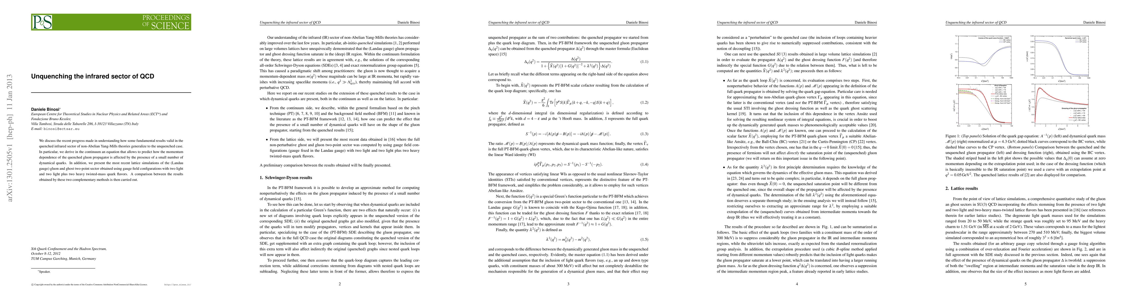 We discuss the recent progress made in understanding how some fundamental results valid in the quenched infrared sector of non-Abelian Yang-Mills theories generalize to the unquenched case. In particular, we derive in the continuum an equation that allows to predict how the momentum dependence of the quenched gluon propagator is affected by the presence of a small number of dynamical quarks. In addition, we present the most recent lattice simulations of the (Landau gauge) gluon and ghost two-point sector obtained using gauge field configurations with two light and two light plus two heavy twisted-mass quark flavors. A comparison between the results obtained by these two complementary methods is then carried out.