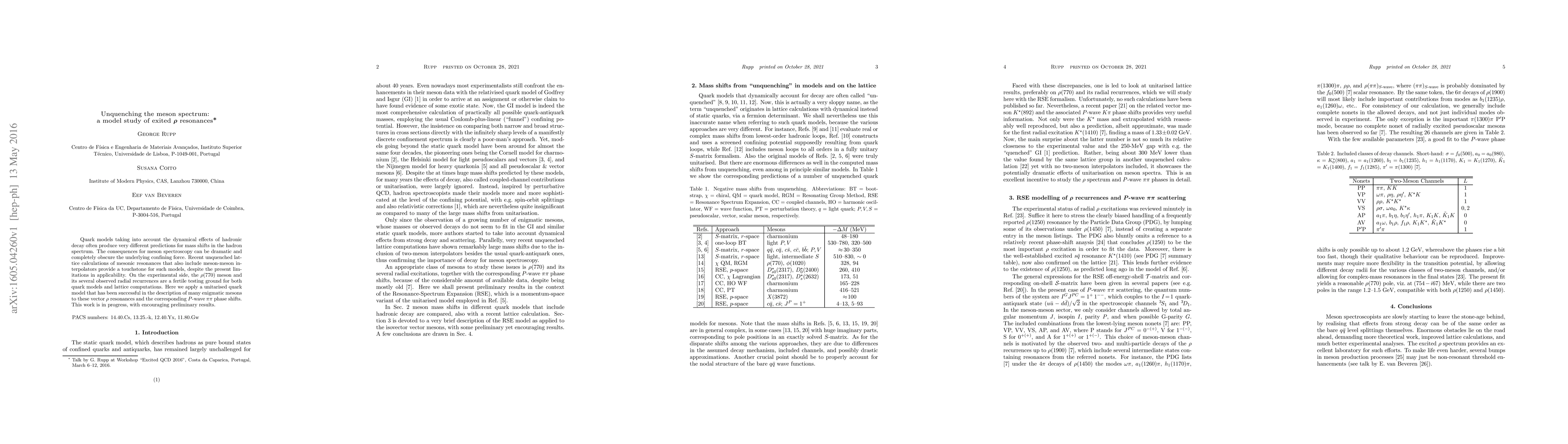 Quark models taking into account the dynamical effects of hadronic decay often produce very different predictions for mass shifts in the hadron spectrum. The consequences for meson spectroscopy can be dramatic and completely obscure the underlying confining force. Recent unquenched lattice calculations of mesonic resonances that also include meson-meson interpolators provide a touchstone for such models, despite the present limitations in applicability. On the experimental side, the $\rho(770)$ meson and its several observed radial recurrences are a fertile testing ground for both quark models and lattice computations. Here we apply a unitarised quark model that has been successful in the description of many enigmatic mesons to these vector $\rho$ resonances and the corresponding $P$-wave $\pi\pi$ phase shifts. This work is in progress, with encouraging preliminary results.