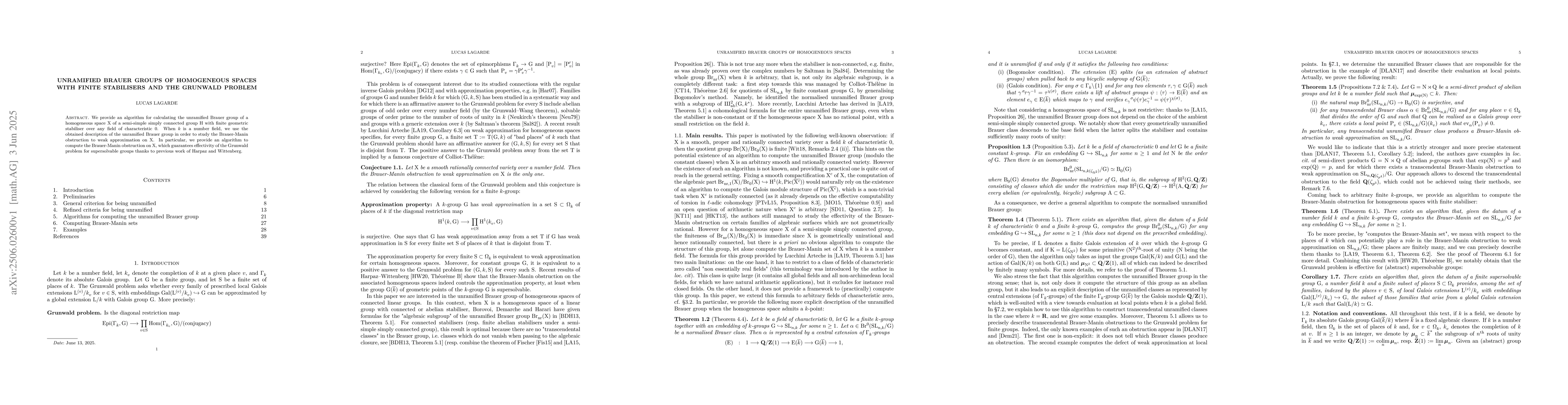 This work builds on previous research by Harpaz and Wittenberg, providing a novel algorithmic approach to the Grunwald problem for supersolvable groups by leveraging unramified Brauer groups of homogeneous spaces with finite stabilizers.