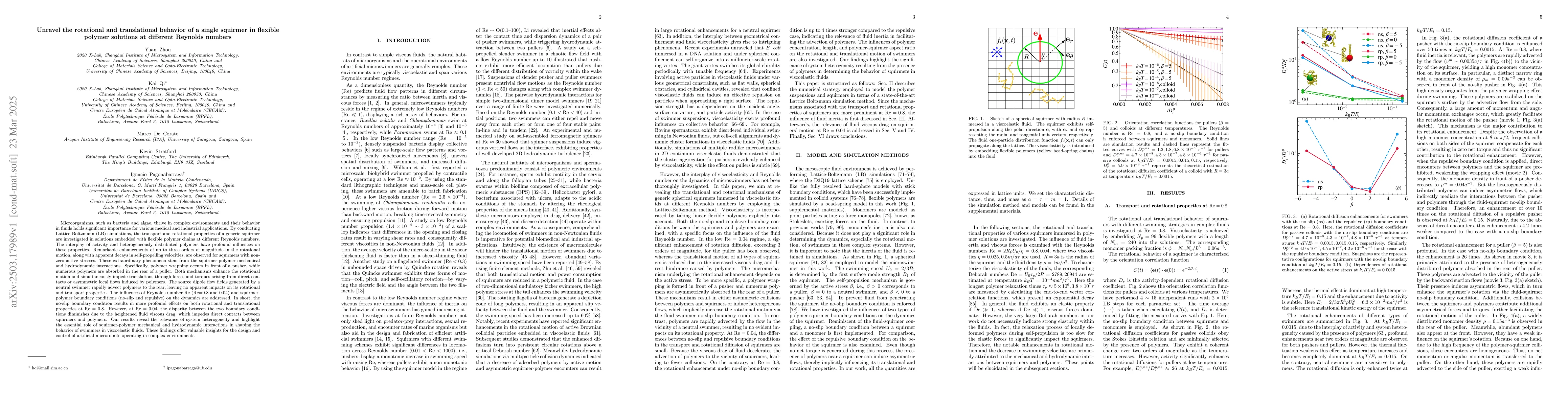 The paper presents detailed Lattice Boltzmann simulations to analyze the rotational and translational behavior of squirmers in flexible polymer solutions, providing insights into squirmer-polymer interactions in viscoelastic fluids.