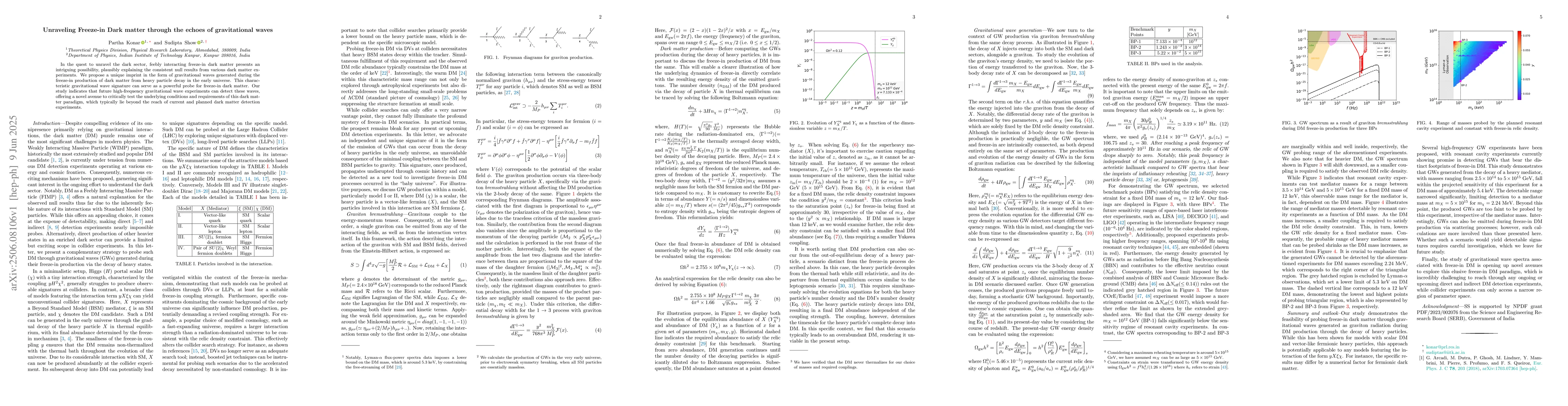 In the quest to unravel the dark sector, feebly interacting freeze-in dark matter presents an intriguing possibility, plausibly explaining the consistent null results from various dark matter experiments. We propose a unique imprint in the form of gravitational waves generated during the freeze-in production of dark matter from heavy particle decay in the early universe. This characteristic gravitational wave signature can serve as a powerful probe for freeze-in dark matter. Our study indicates that future high-frequency gravitational wave experiments can detect these waves, offering a novel avenue to critically test the underlying conditions and requirements of this dark matter paradigm, which typically lie beyond the reach of current and planned dark matter detection experiments.