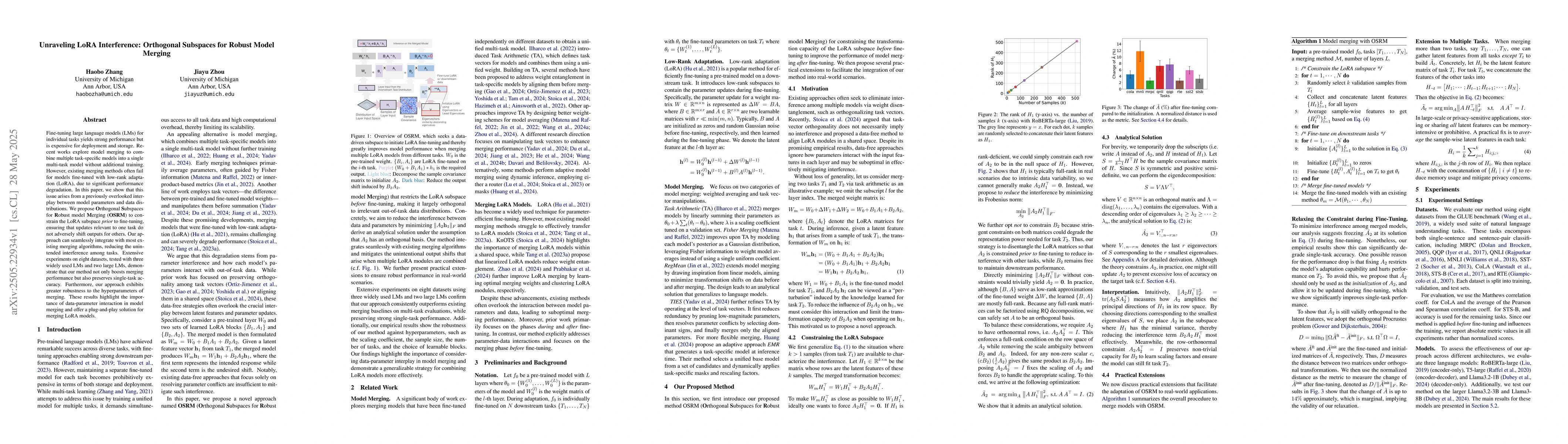 The research proposes Orthogonal Subspaces for Robust model Merging (OSRM), which constrains the LoRA subspace before fine-tuning to prevent adverse shifts in task outputs. OSRM can integrate with existing merging algorithms.