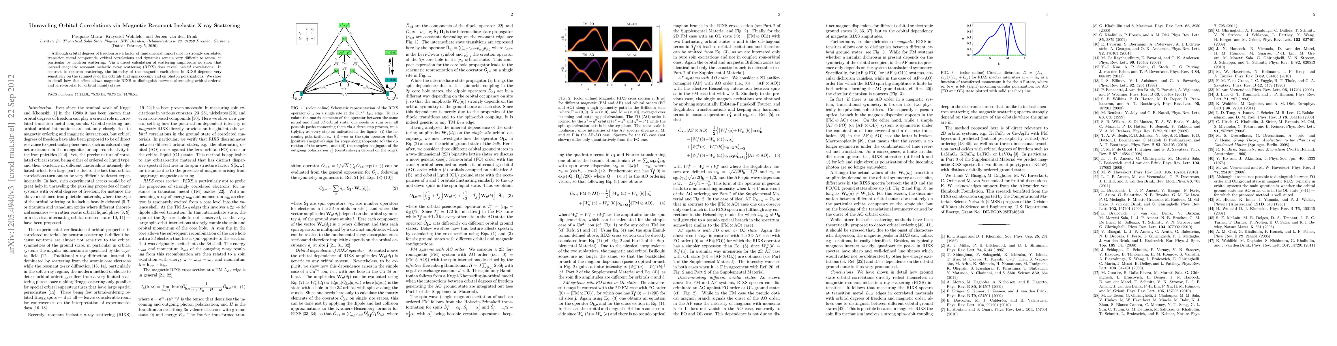 This paper demonstrates that magnetic resonant inelastic X-ray scattering (RIXS) can effectively reveal orbital correlations in strongly correlated transition metal compounds, unlike neutron scattering. The method's sensitivity to orbital symmetry and photon polarization enables distinction between alternating orbital order and ferro-orbital or orbital liquid states.